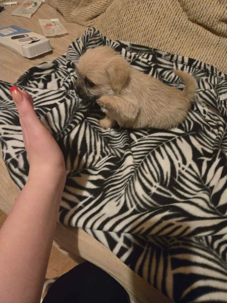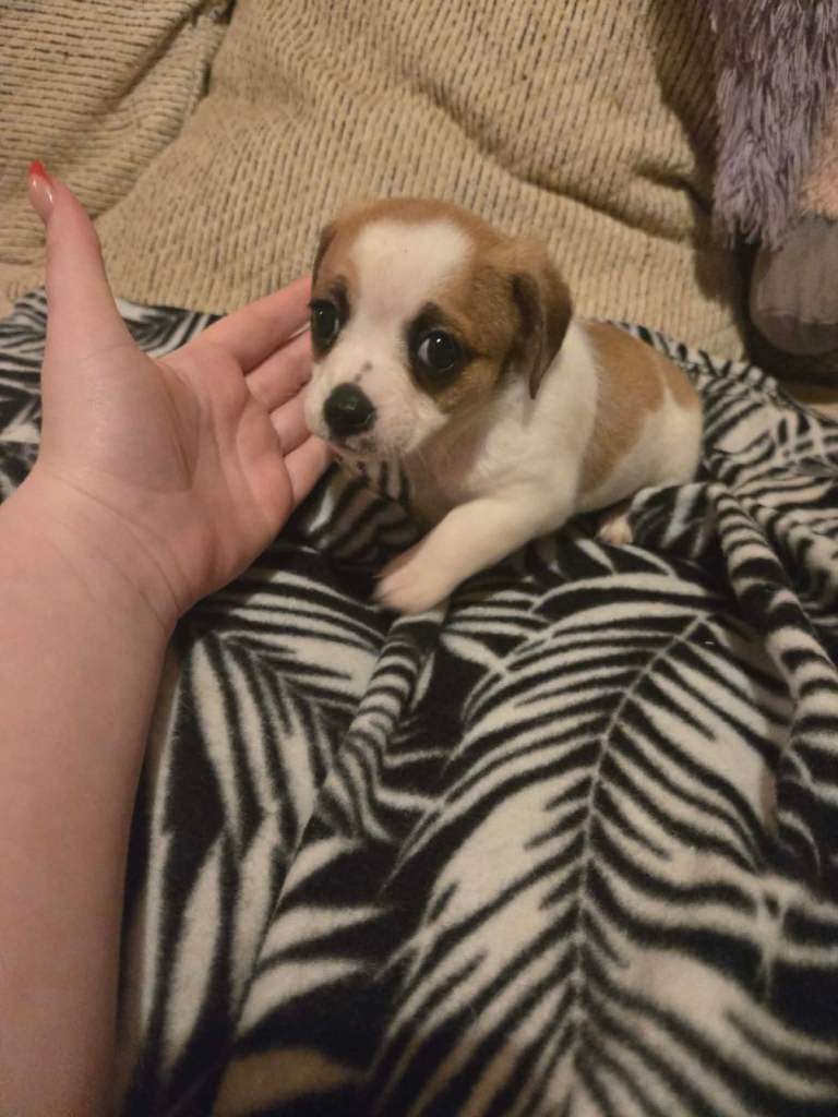 I have for sale and ready now for there new loving forever homes 6 beautiful cavachon c jug pups . Mum is a jug dad is a cavachon . All pups are happy healthy wormed flea treated micro chipped . They will need there injections hence the low price . They eat both wet and dry food . And will come with enough for couple days get started in new homes . These really are great playful pups used children other dogs . 4 boys . One is dark fawn black specks . Other is the black and white . There is a real fluffy brown white boy , then small brown white no spots on nose . The girls are the brown white with little spots on nose . And light fawn girl . Pictures do not do them justice, they really are stunning pups