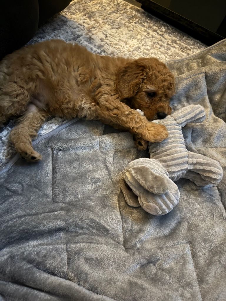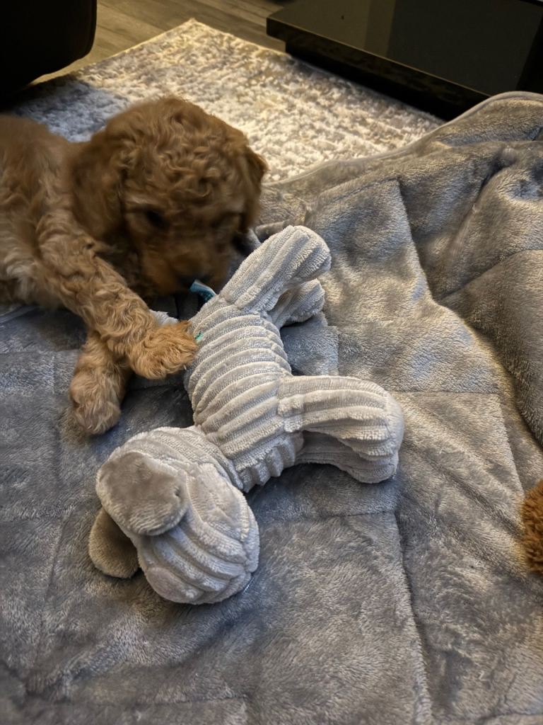9 week old boy we got him just over a week ago but my husband as taken ill and I’m having to go to the hospital all the time and it’s really not fair leaving the puppy on his own for all that time. He is an absolute brilliant puppy sleeping from 9pm till 5am in his play pen cries when he wants to go out so I’ve had no accidents in the house. I have photos of mum and dad . He’s due to go for his next vacation on the 29th January 2026. He’s been wormed and flead microchipped he will also come with toys playpen blankets beds food bowls and his food he is on.