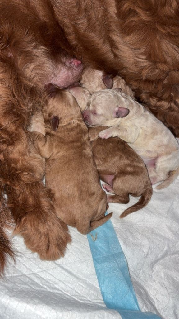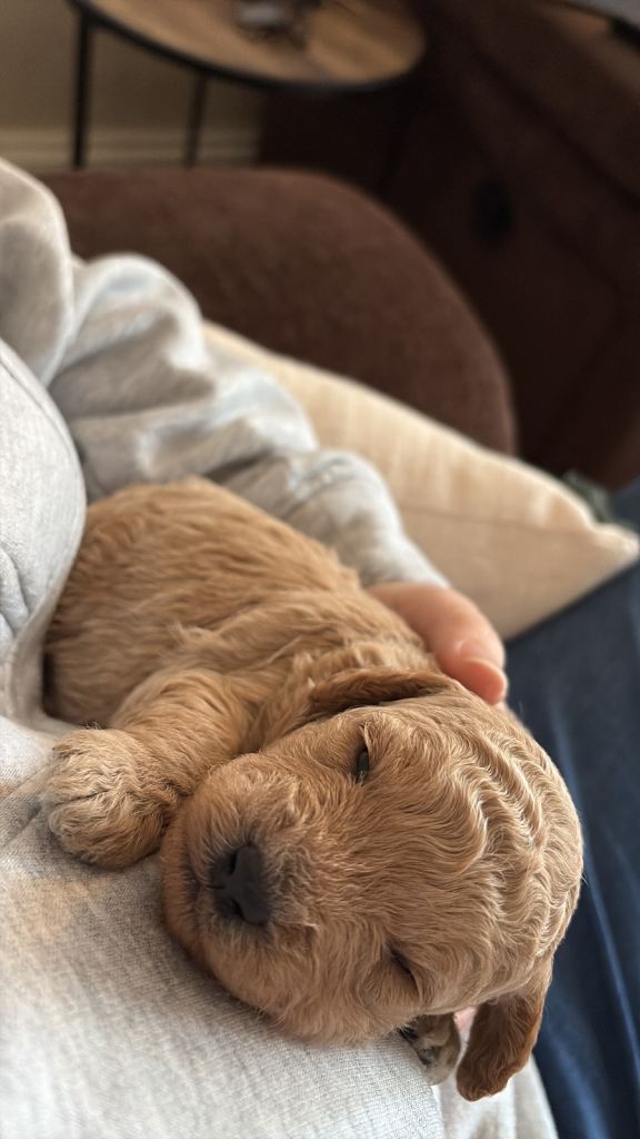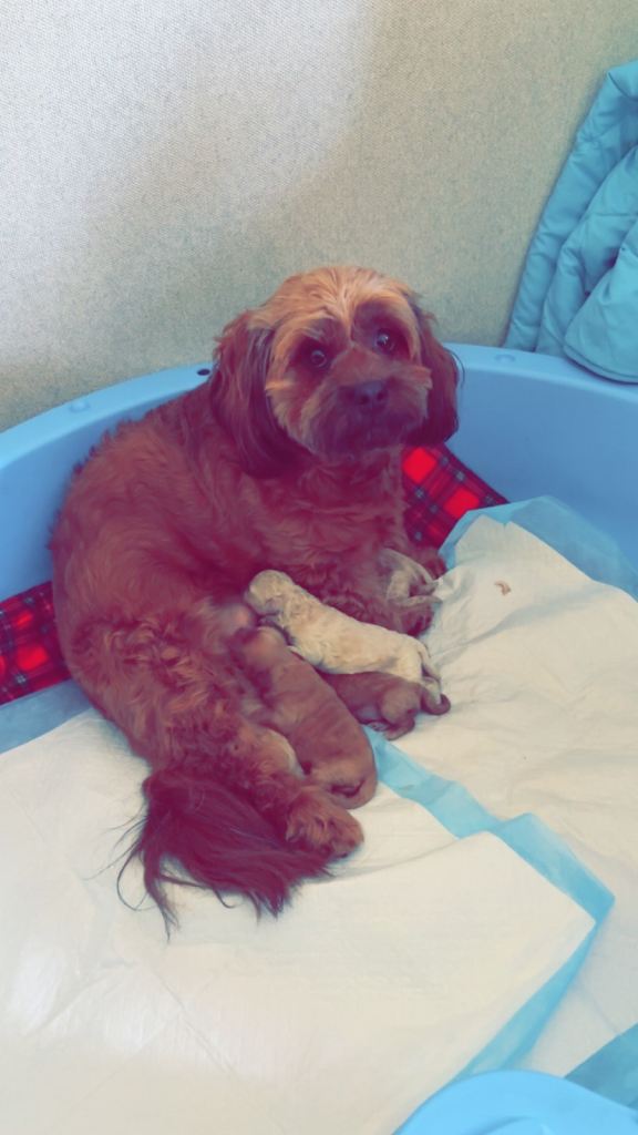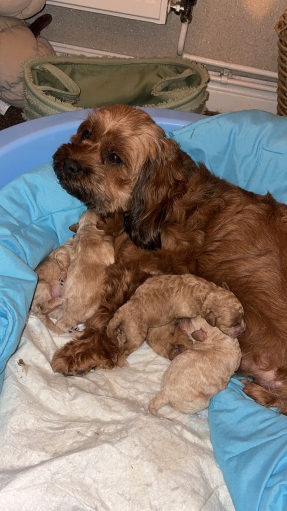 Mum is a red cavapoo very beloved family pet, she’s a gorgeous girl with the most gentle temperament.