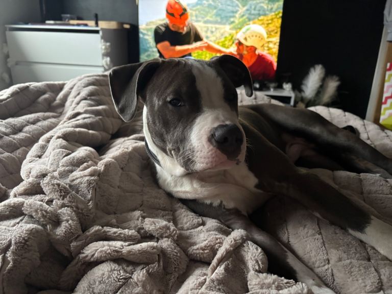 Walks well on or off his lead, comes back when called. He likes to play with his toys. He Sleeps well in his crate at night. Milo will need someone who is there with him most of the time, him still being a puppy, he needs further training. He can live with other dogs, or as an only dog.
