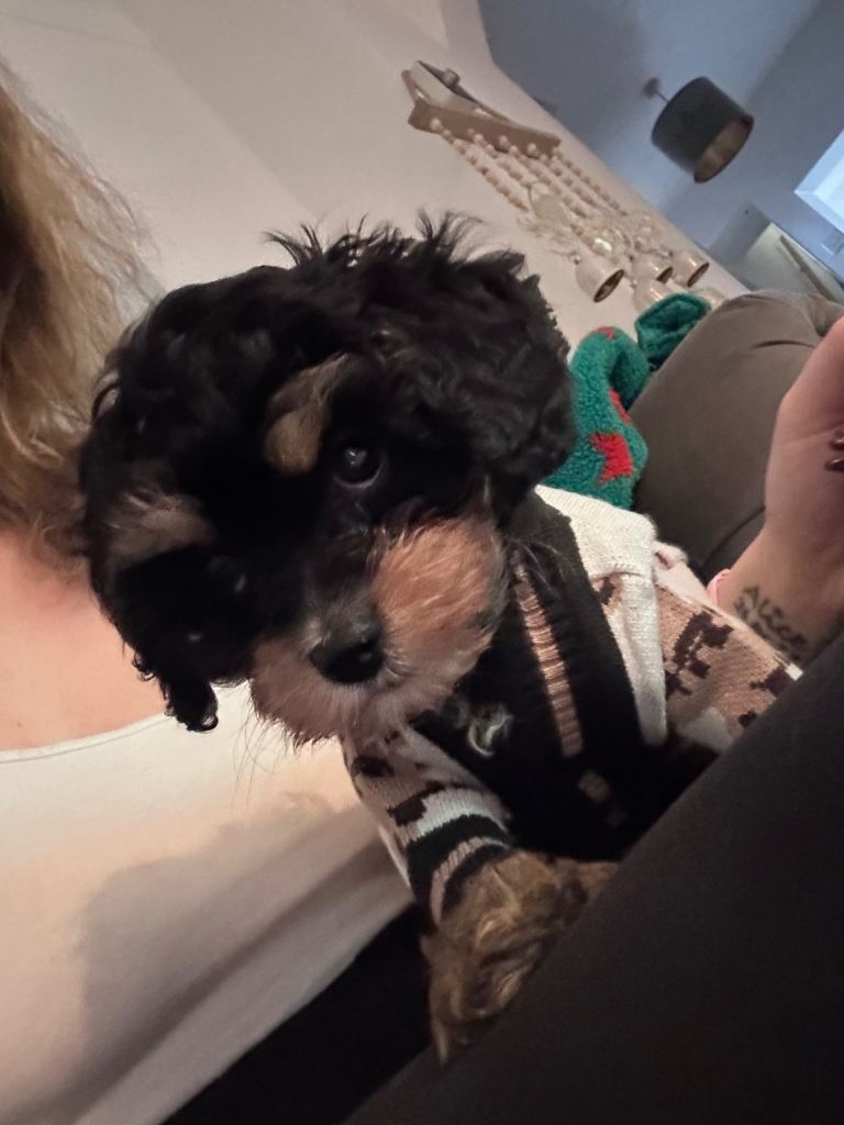 This is Winton a male cavapoo who is 11 weeks old. Born on the 10th November. We got him at 8 weeks from a breeder in Hampshire. His mum is a King Charles spaniel and dad is an F1 toy poodle. We got him thinking there would be no allergies due to his breed but unfortunately our little boy has kept having reactions. So we have no choice but to re home him.
