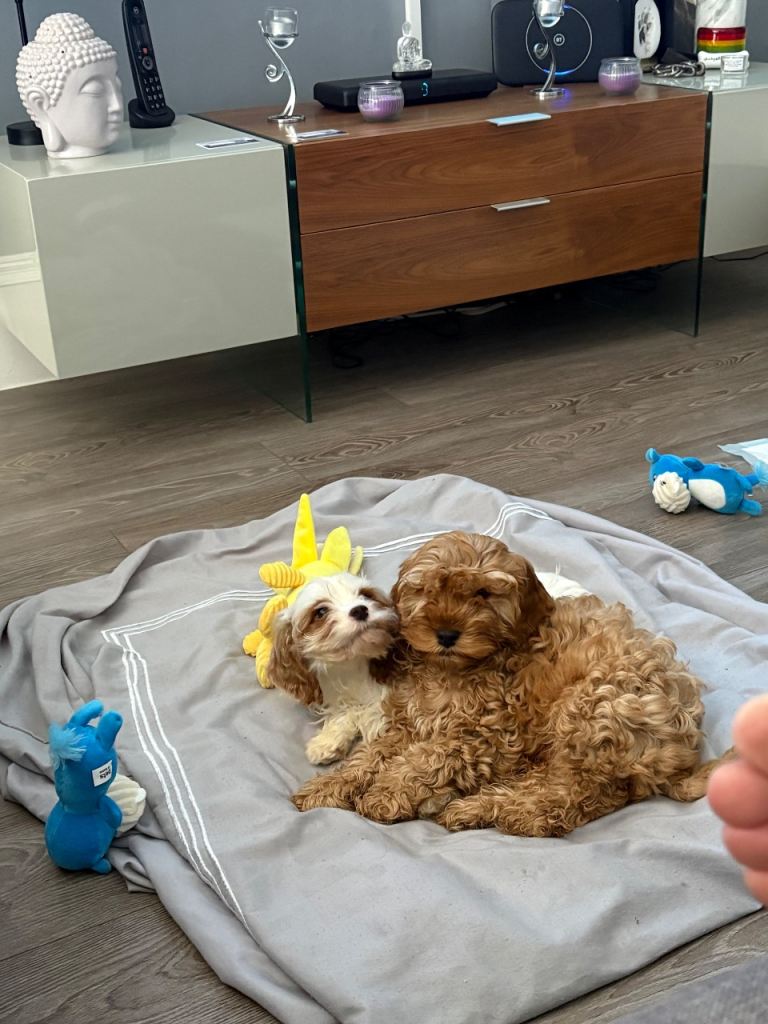 We have 2 gorgeous cavapoo boys 9 weeks old lovely natured looking for there forever homes. Have been wormed, flead and microchipped just need there vaccinations.