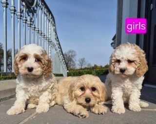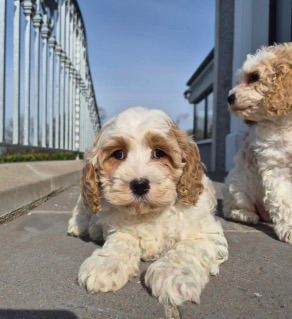 Mum is a Blenheim King Charles spaniel and dad is a miniature poodle. Excellent family dogs, easy to train and great for first-time dog owners.