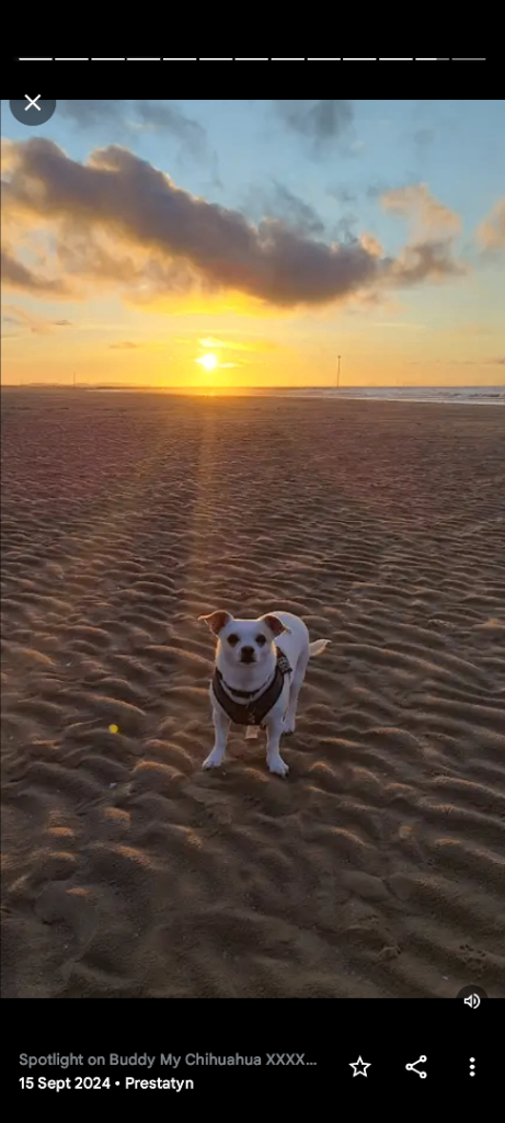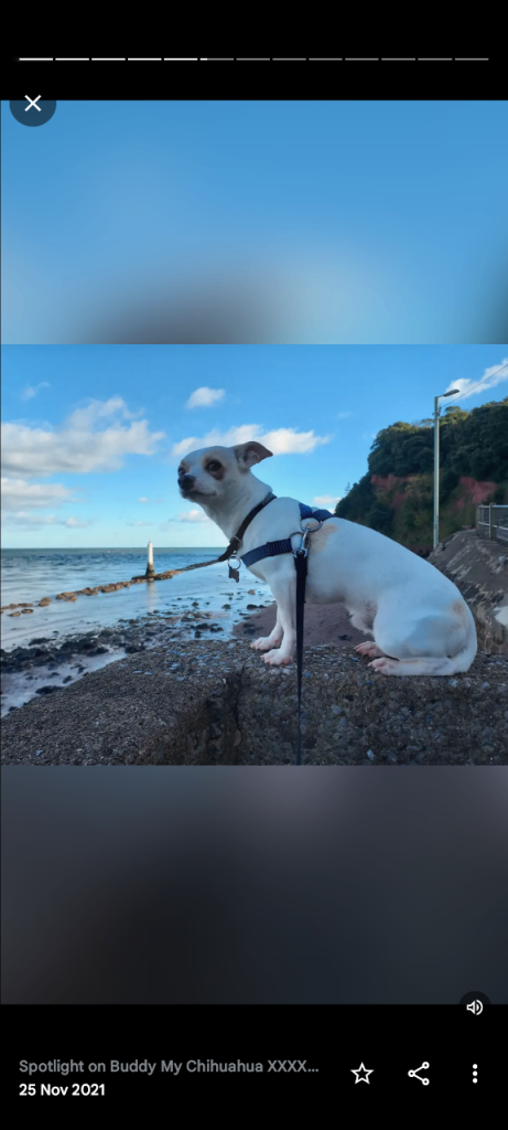 His name is "Buddy" and absolutely loves kids and adults and is not the typical miserable Chihuahua!