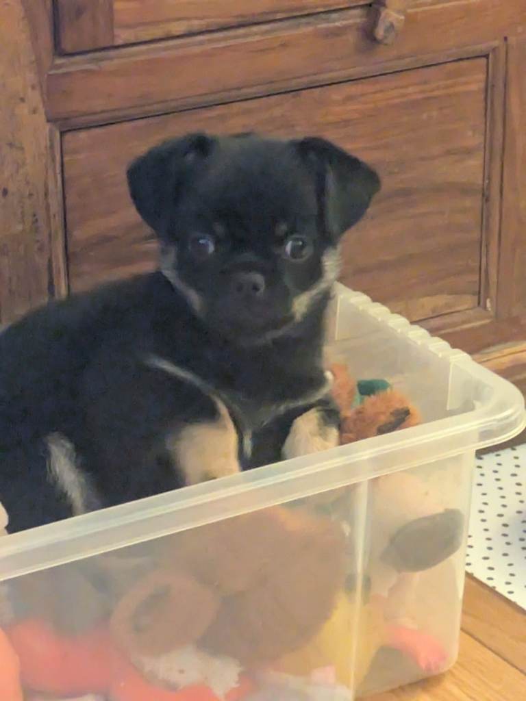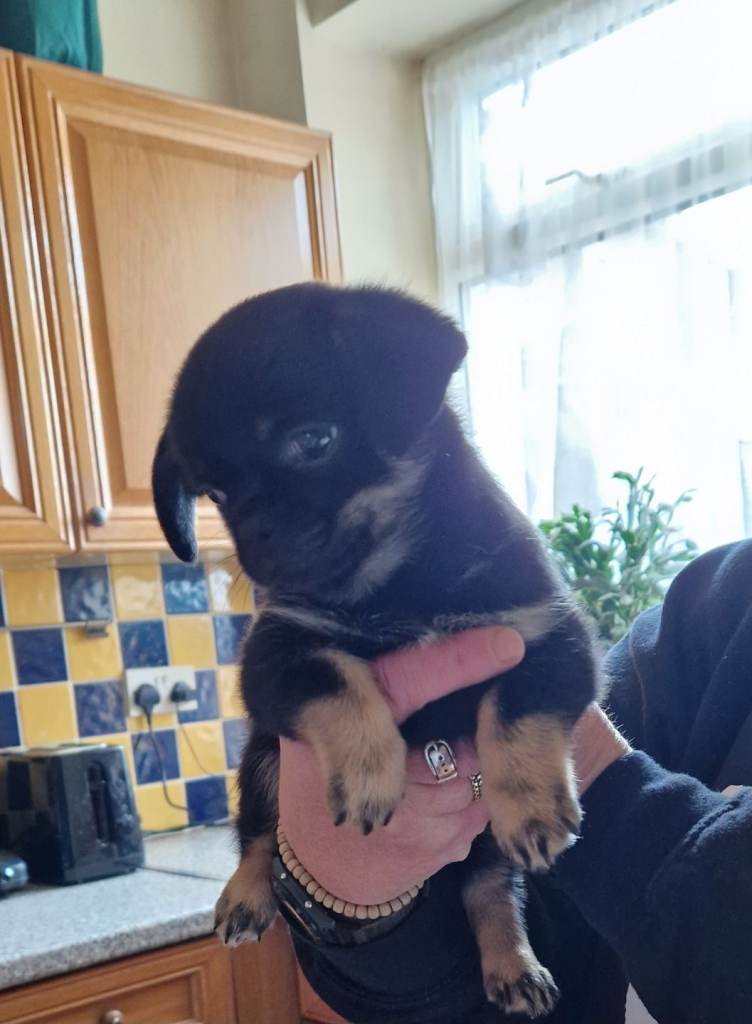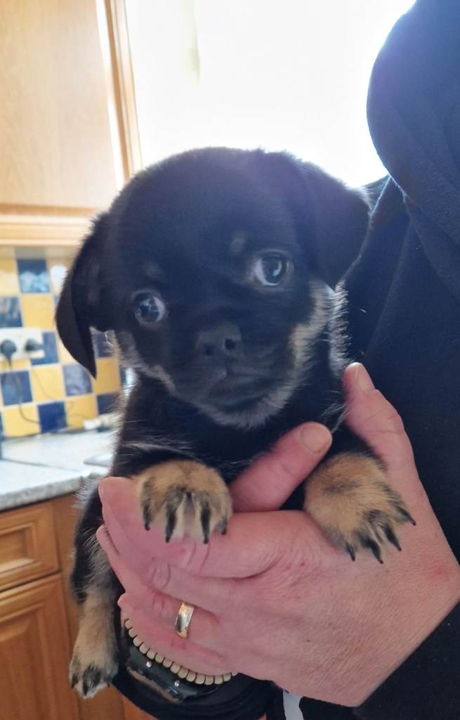 Little Chihuahua cross boy,we think he has a little pug in him.as vets even said they think he has pug features.only 9 wks old approx. He has had first injection and microchipped ,beautiful loving little fur baby.he gets on with other dogs,very playful full of energy not 100% house trained but he is only young.Genuine enquiries only please no timewasters please feel free to ask any questions will try to answer if i can .