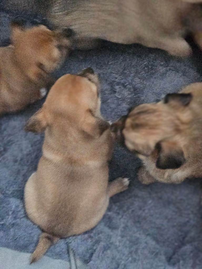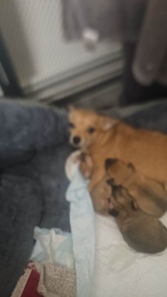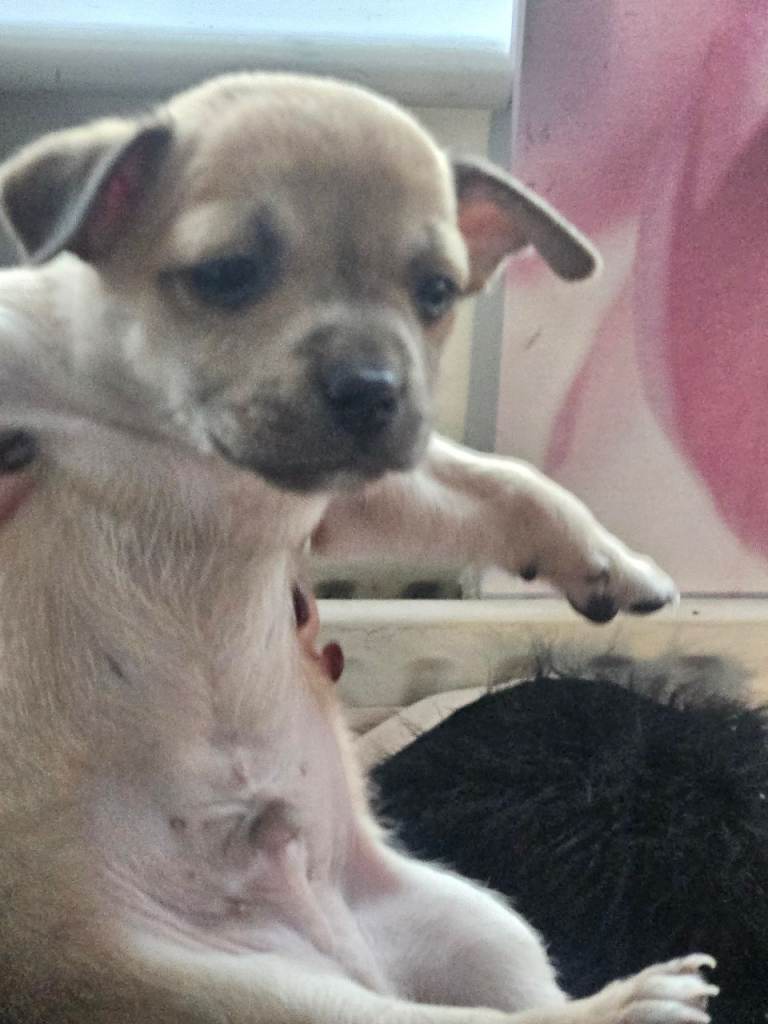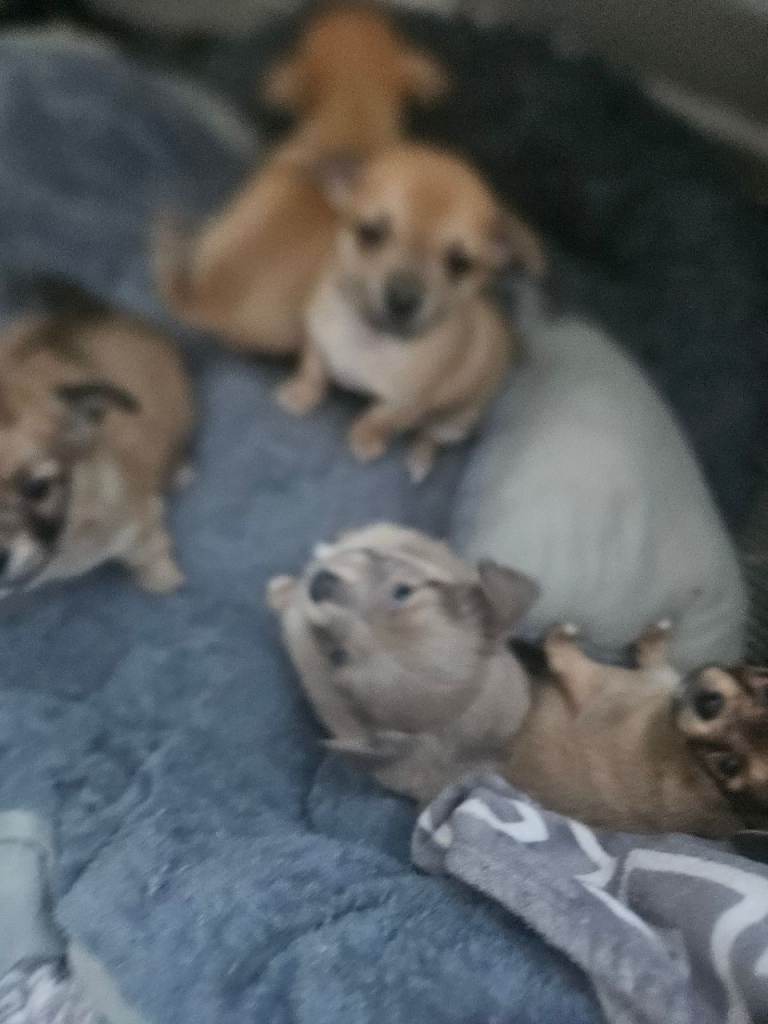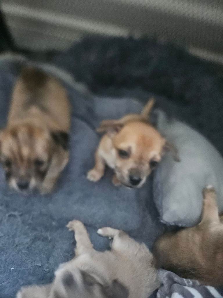 Mule and tan and lilic apple head chihuahua beautiful fluffy and nice colours nice playful personality's well loved mum and dad thy can both be seen as live 2gether born on 5 jan 4 girls 1 boy ready leave 27th febuary onwards can take 50 deposit have collars once chosen ur collar colour will go on youre pup ,puppies will be vaccinated and micro chipped call nikki on mobile or watsapp happy send u videos etc