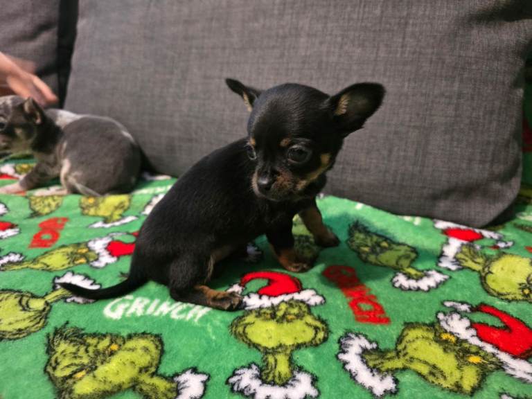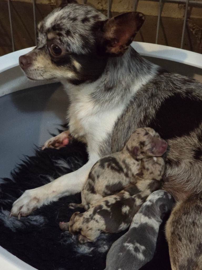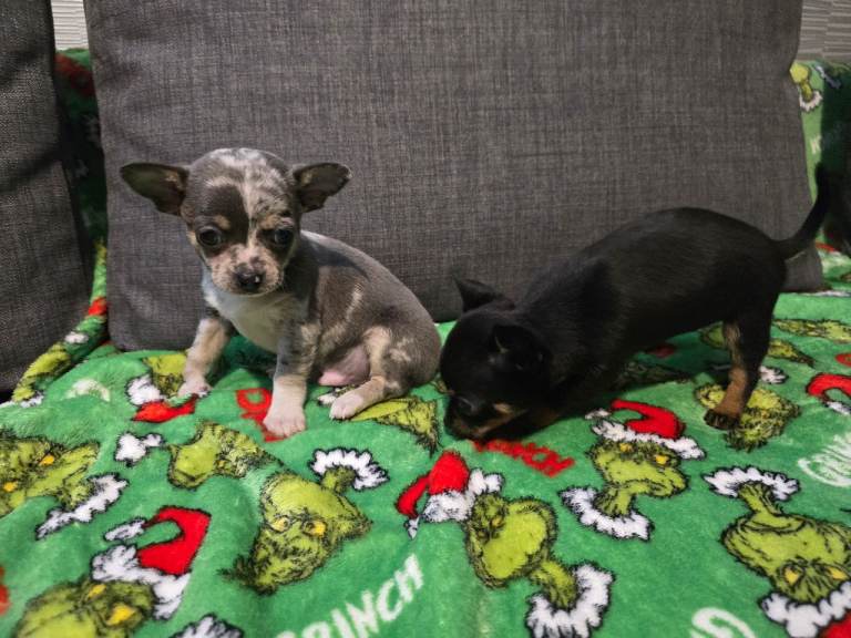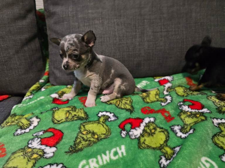 Beautiful puppies 1 blue melre boy and 1 black tri female short hair. Mum is merle family pet dad is blue. Puppies will be wormed and flea treated. Used to kids and other dogs. Will have first vaccination and will be microchiped. Read to new home