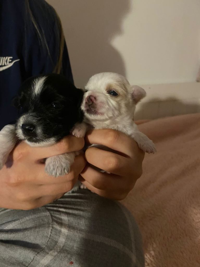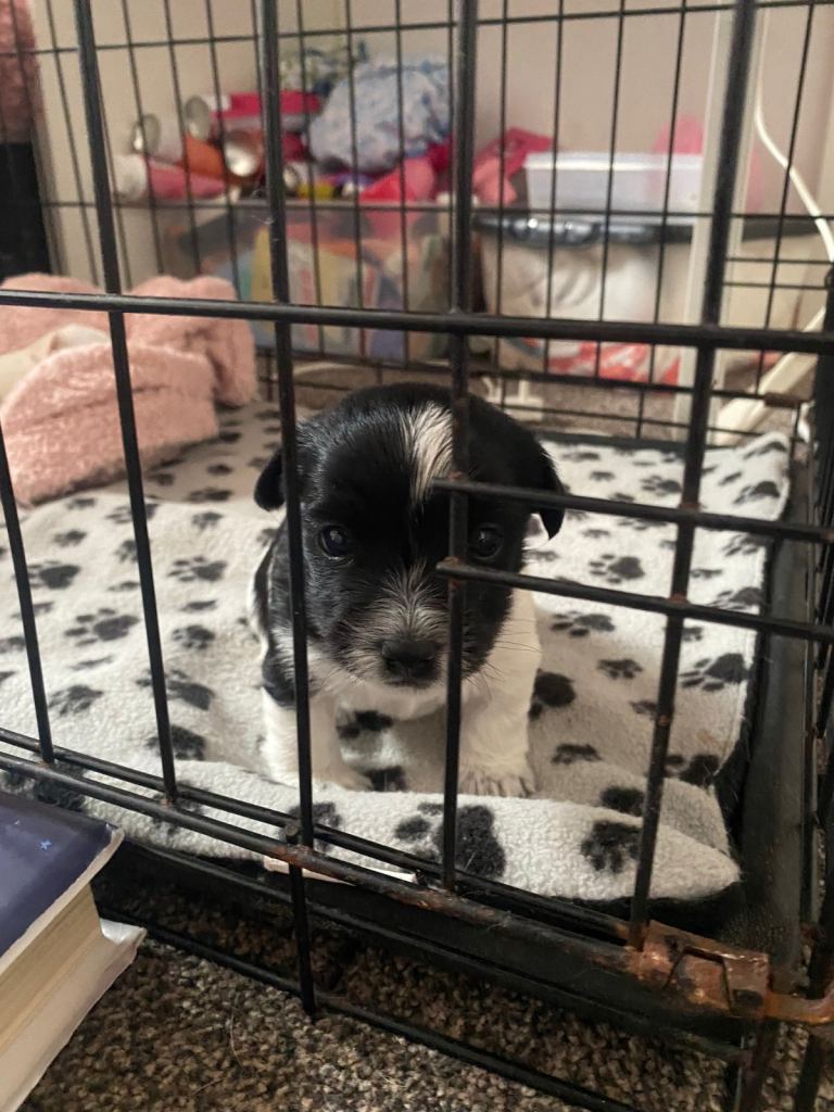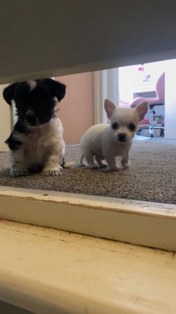 2 beautiful boy puppies for sale born 20th February 2026 ready to leave 17th April 2026 at 8 weeks old mum is chihuahua x jack Russell dad is a yorkiepoo.