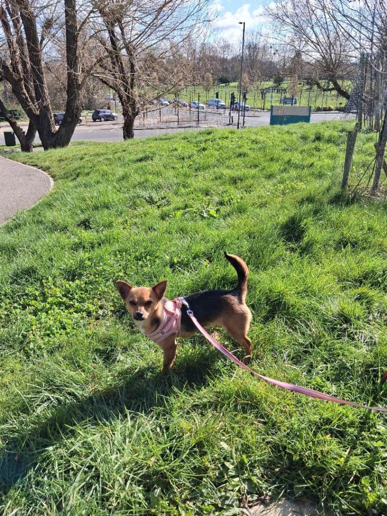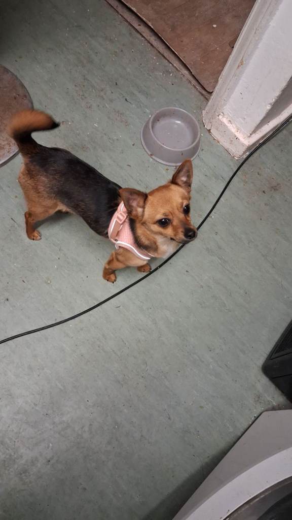 Two years old and just wants to be loved very cuddly and very nosey like a miniature German Shepherd but does what she is told instantly.Long life span ahead of her she gets on well with other dogs and cats completely non aggressive excellent security 😉