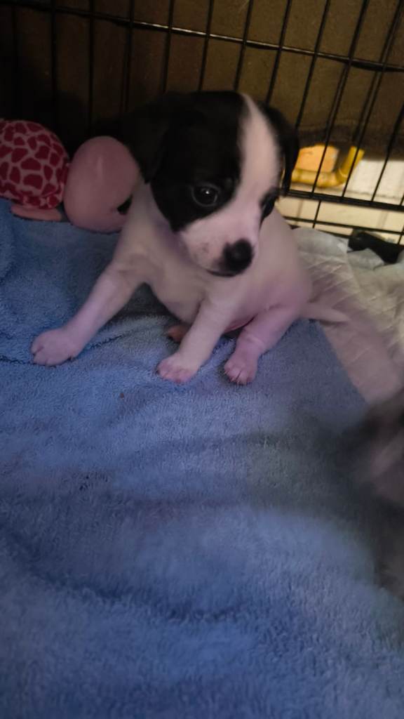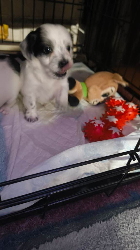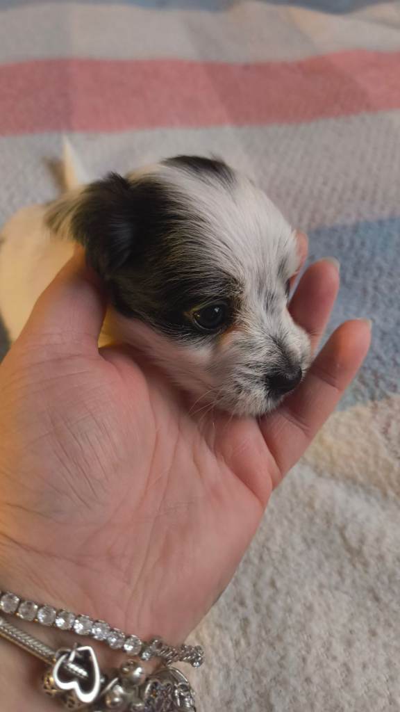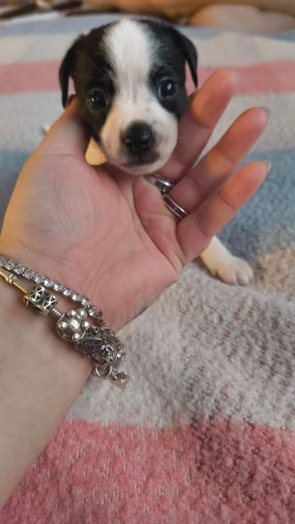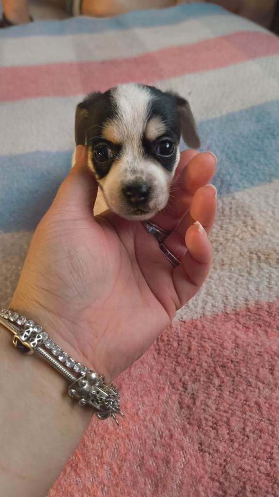 Here are 4 beautiful cockajack x chihuahua male puppies born 9th December 2025 mum is cockajack and dad is chihuahua there are 5 weeks old on the 13th January ready to leave on 10th February now eating meat will be wormed puppy pad trained. They are very loving very playful puppies with great personalities can be viewed mum and dad can be seen I have put pictures up of mum and dad will be asking for a £50 deposit if you have any questions don't hesitate to ask