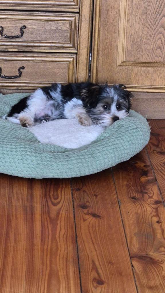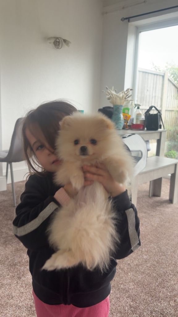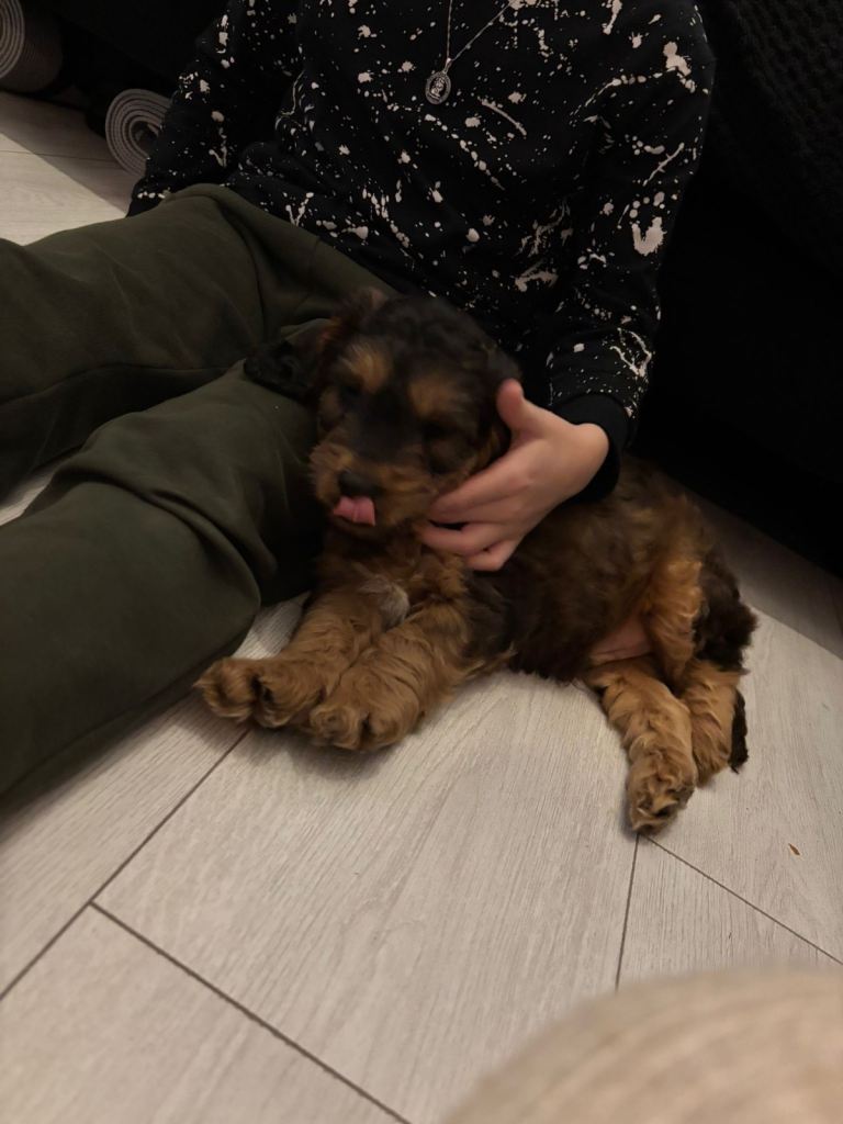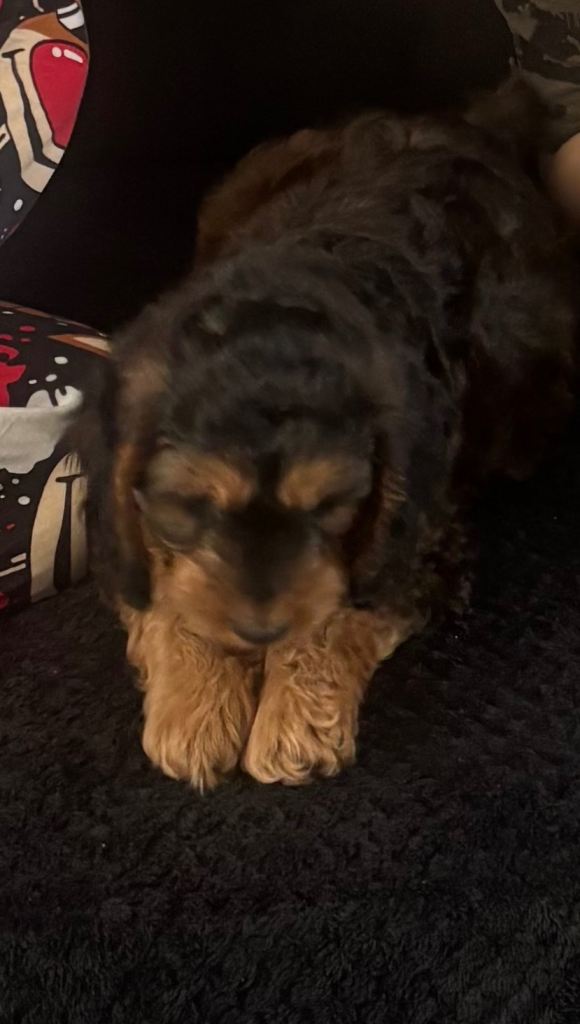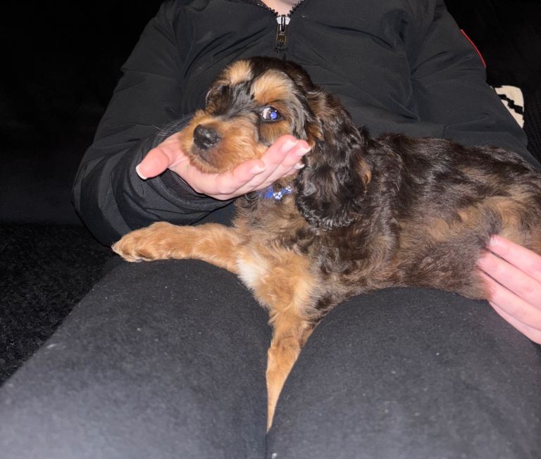 Having to rehome are beautiful boy he has only been with us for 3 days but unfortunately due to my son’s allergies we are having to let him go. Comes with crate, puppy pads, bowls, toys and his food. Arlo is a loving, cuddly playful puppy who has been around children from birth. The ladie we got him off had 8 grandchildren and I have 3 children who adore him. We got him as he is hypoallergenic but my sons allergies are to severe to keep him.