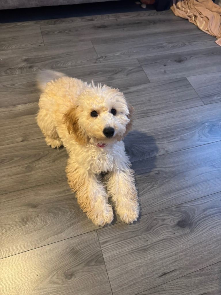 Beautiful 4-month-old Cockapoo puppy looking for a loving forever home. She has been raised in a family environment and is very well socialised. We have a 6-year-old child, so she is great with kids and is used to being around them. She is also good with other dogs.