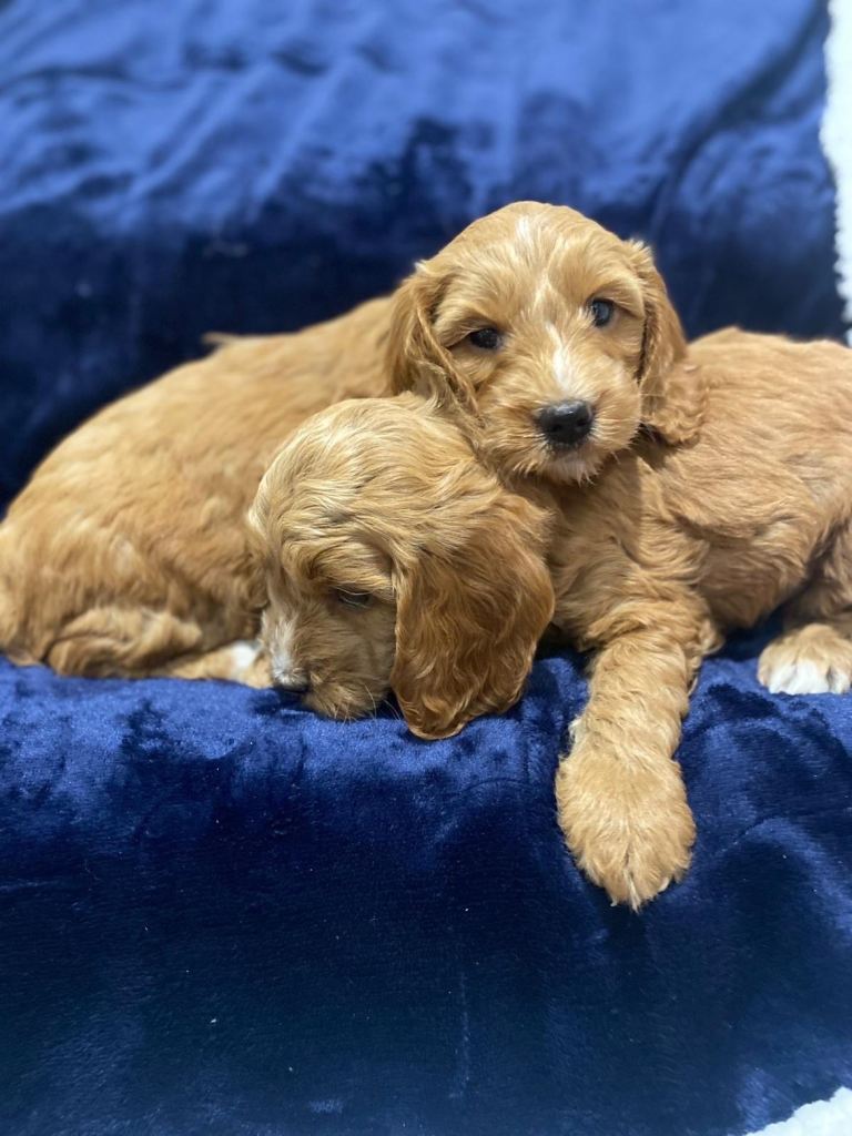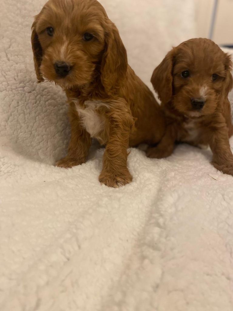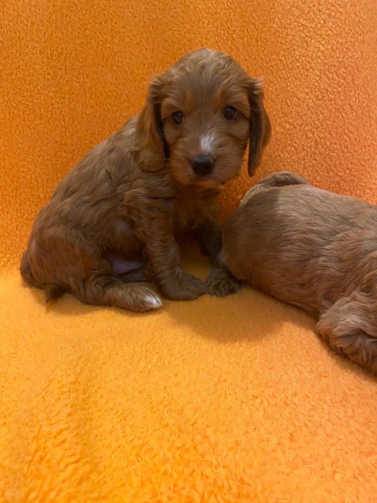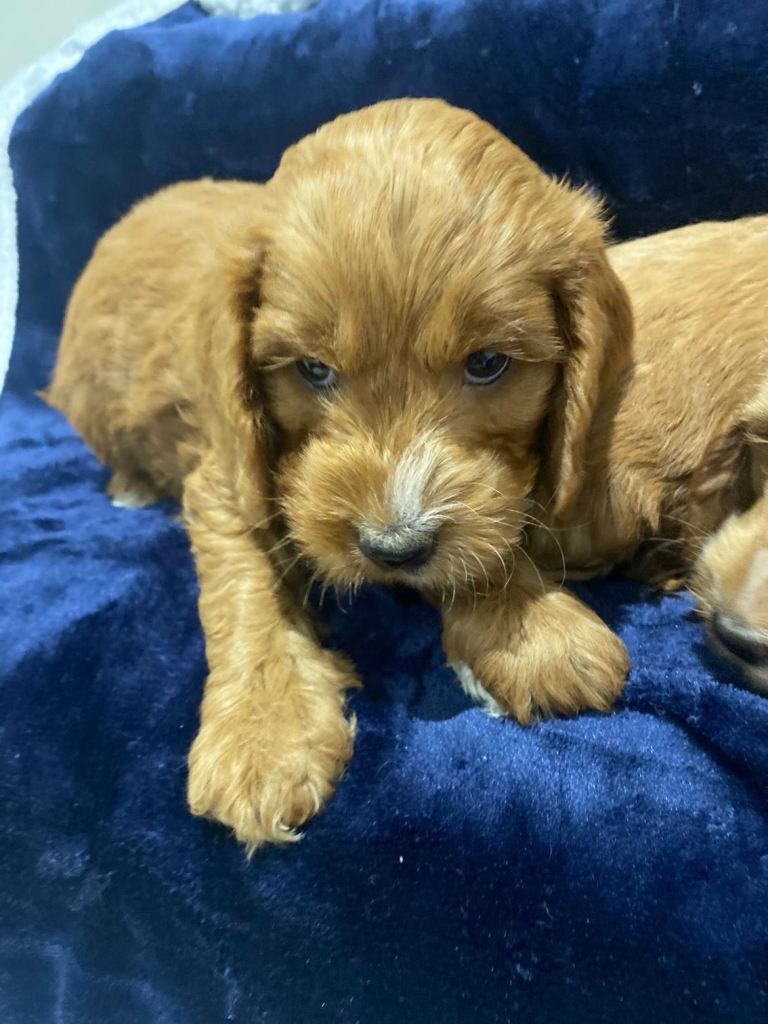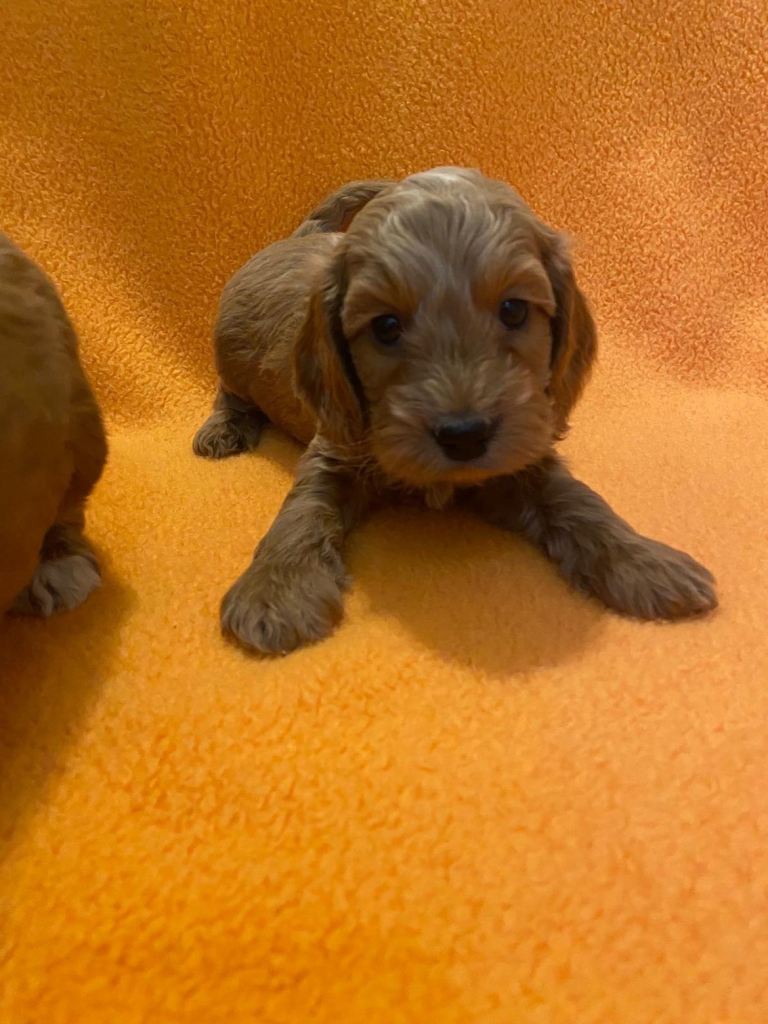 Beautiful Cockapoo Puppies ready in five days time for their new families with their vet check, microchip and first injection.