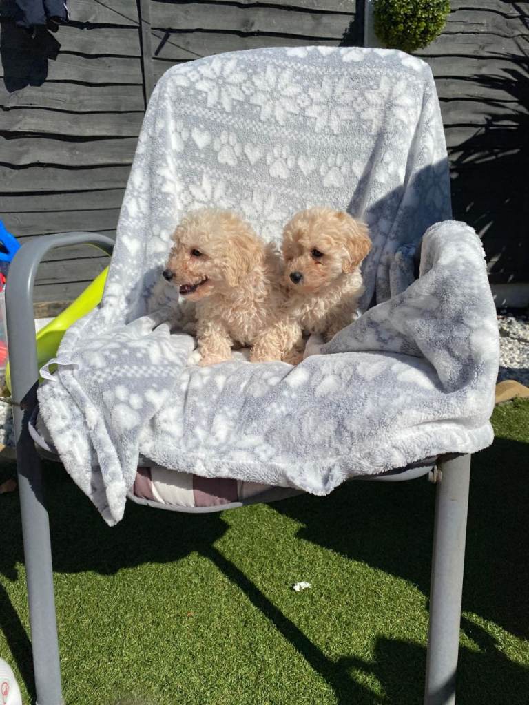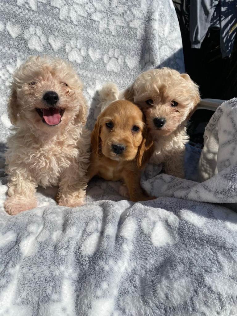 Beautiful puppies for sale ready to leave now they have received their first vaccine they are also microchipped they're eating dry puppy food there are loving friendly bundles of joy please contact for more info