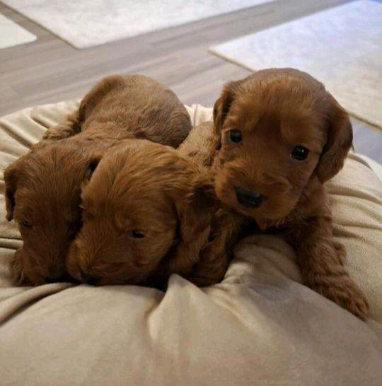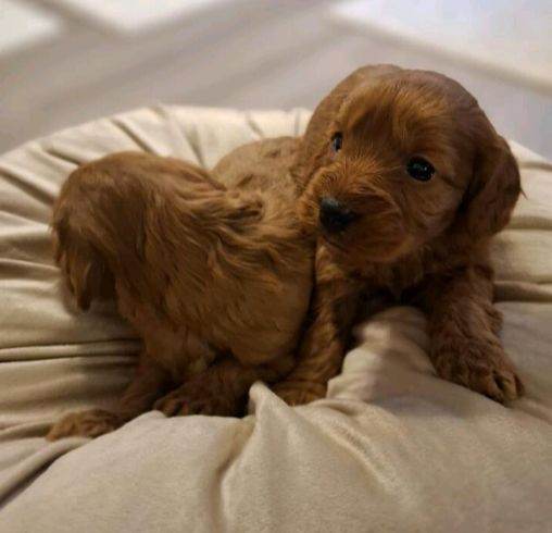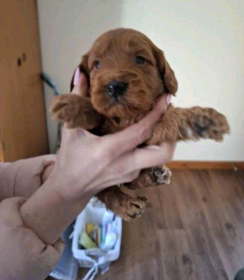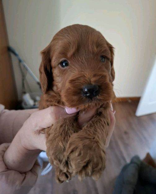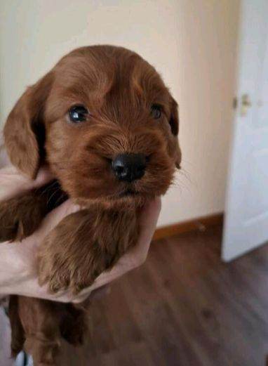 F1 Cockapoo puppies, deep red in colour. Mother is a KC registered show Cocker Spaniel and father is also kc registered and is a miniature poodle, both can be seen with puppies. The puppies will leave with 1st injection and will be microchipped upon collection, they will also come with a puppy pack. All puppies will be wormed up to date.