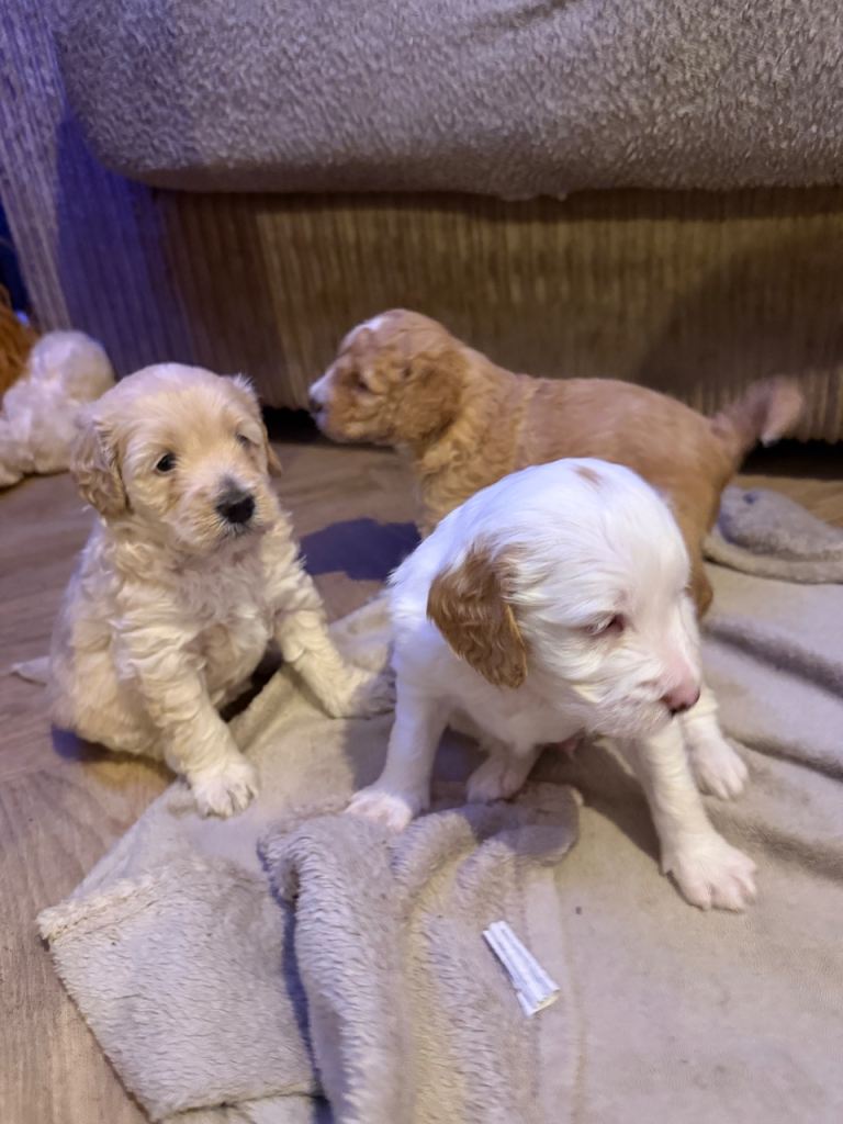 2 girls & 3 boys available, they are gorgeous colours & some are going to be curlier than others I think, but will become more visable as they grow.