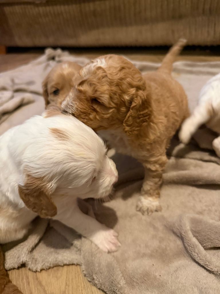 Pups are being brought up in our family home with our children, mum & dad, cats & another dog so they will be very well socialised and used to everyday noises.