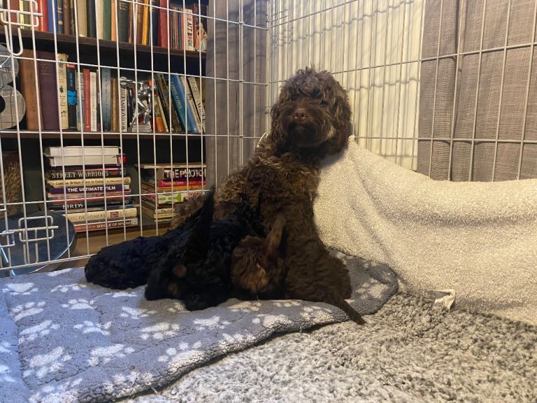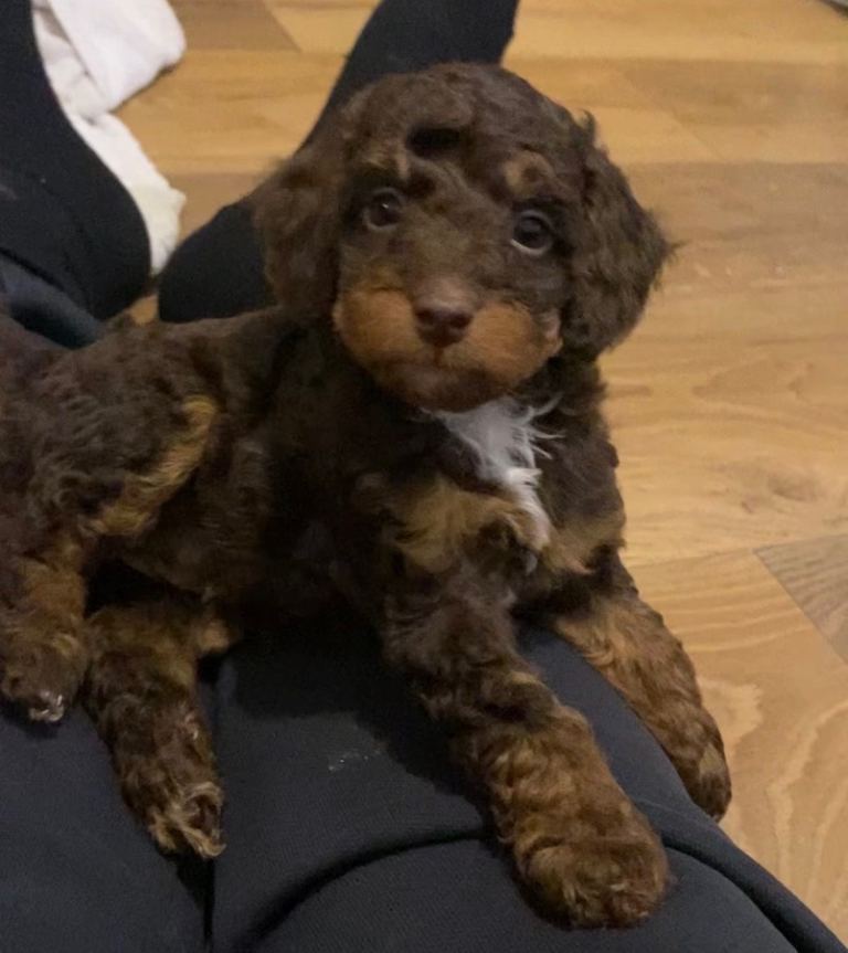 Mother, is a beautiful 3-year old, brown, F1 cockapoo, she is very loving, intelligent, loves walks and playing.