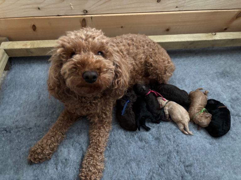 Gorgeous cockapoo puppies f1b. Our family pet has given birth to 7 mixed litter puppies. The dad is a K C registered chocolate toy poodle. All health checks done and documentation available. The puppies will be well socialised with children. Puppy pack included.