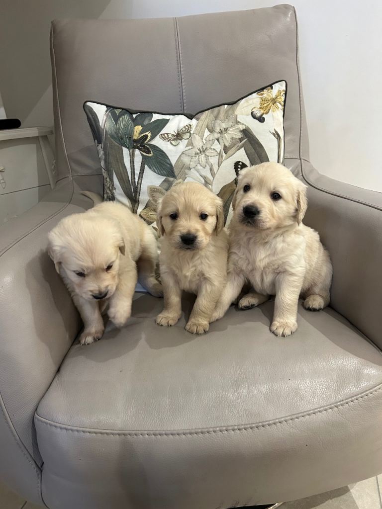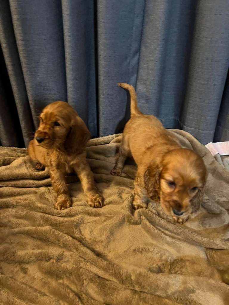 Golden show type Cocker spaniel puppies vaccinated dewormed flea treatment good with other animals and children