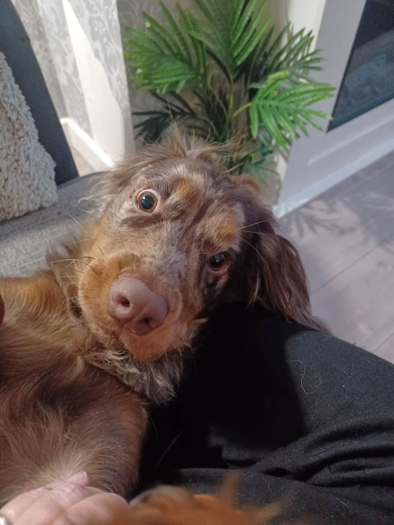 Reggy is 10 months old .. He's merle in colour.. He's a beautiful boy and through no fault of his own I'm needing to rehome him..
