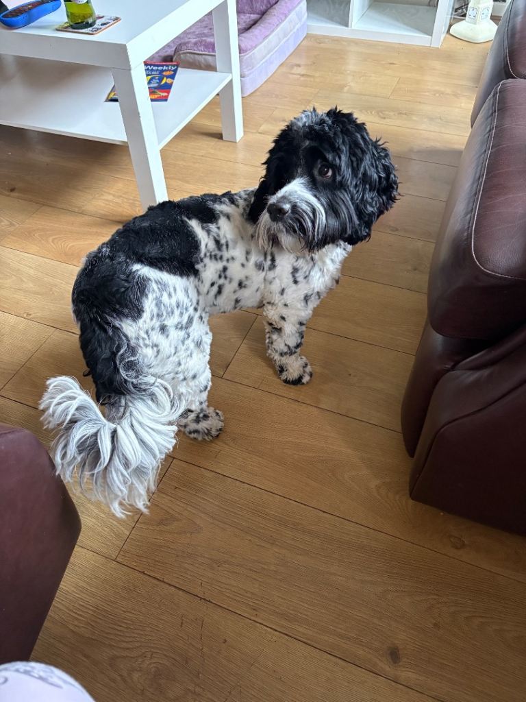 Marshall is 11 months we got him when he was 11 weeks old he has all up to date with his jabs he has been neutered it’s hard to rehome him but my hubby and my self have medical problems so we can’t give him the same care he is great with other dogs and cats great with kids and people