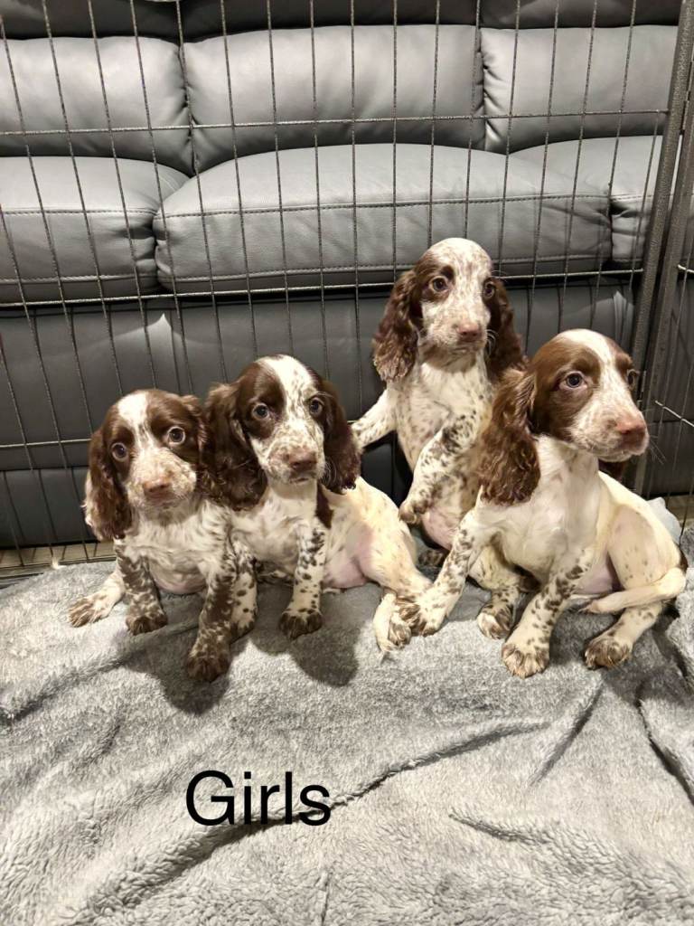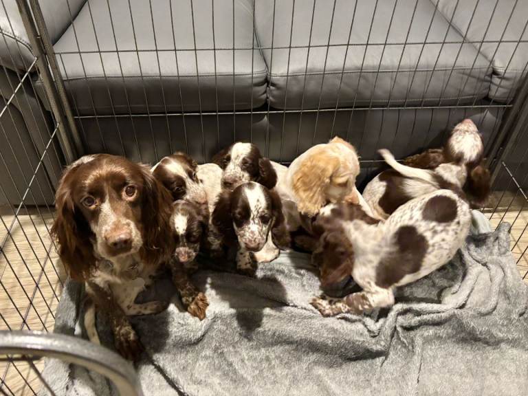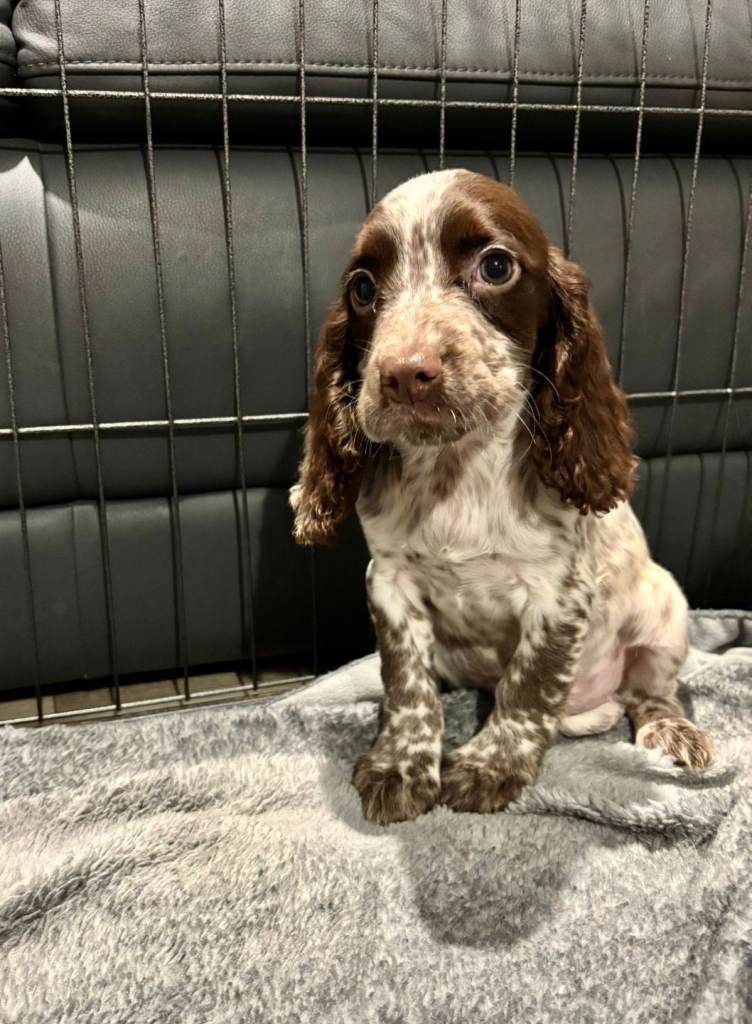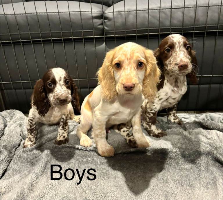We have a beautiful litter of roan cocker spaniel puppies, both girls and boys are available and can be seen in our family home their mother who is our gorgeous chocolate roan cocker.