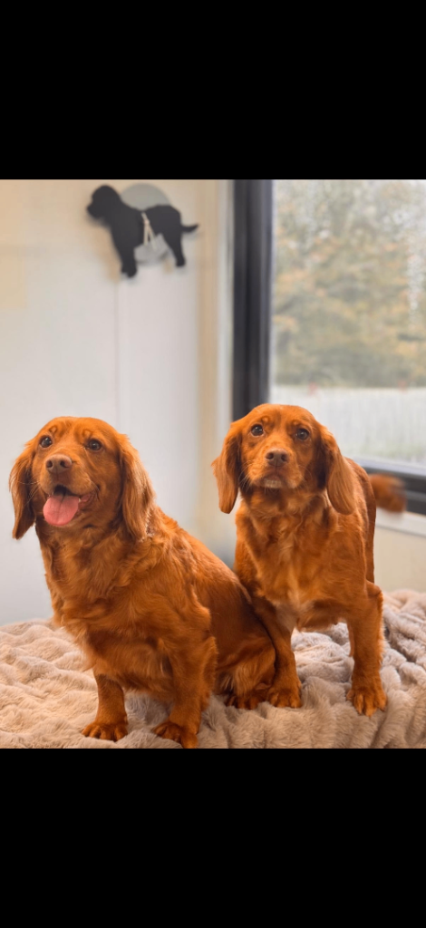 Cocker spaniel girls (sisters) 5 and half years old . Excellent temperaments great with people and other dogs . Lives in or outdoors .