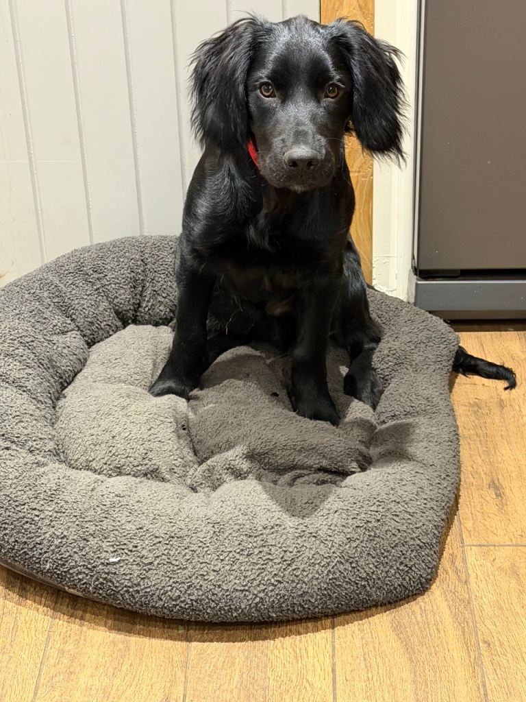 He is a very loving young dog. He will sit, give each paw, lie down and wait when told. He walks on a lead and will come back when let off the lead too. He Never messes in the house and is crate trained and sleeps in there at night time.