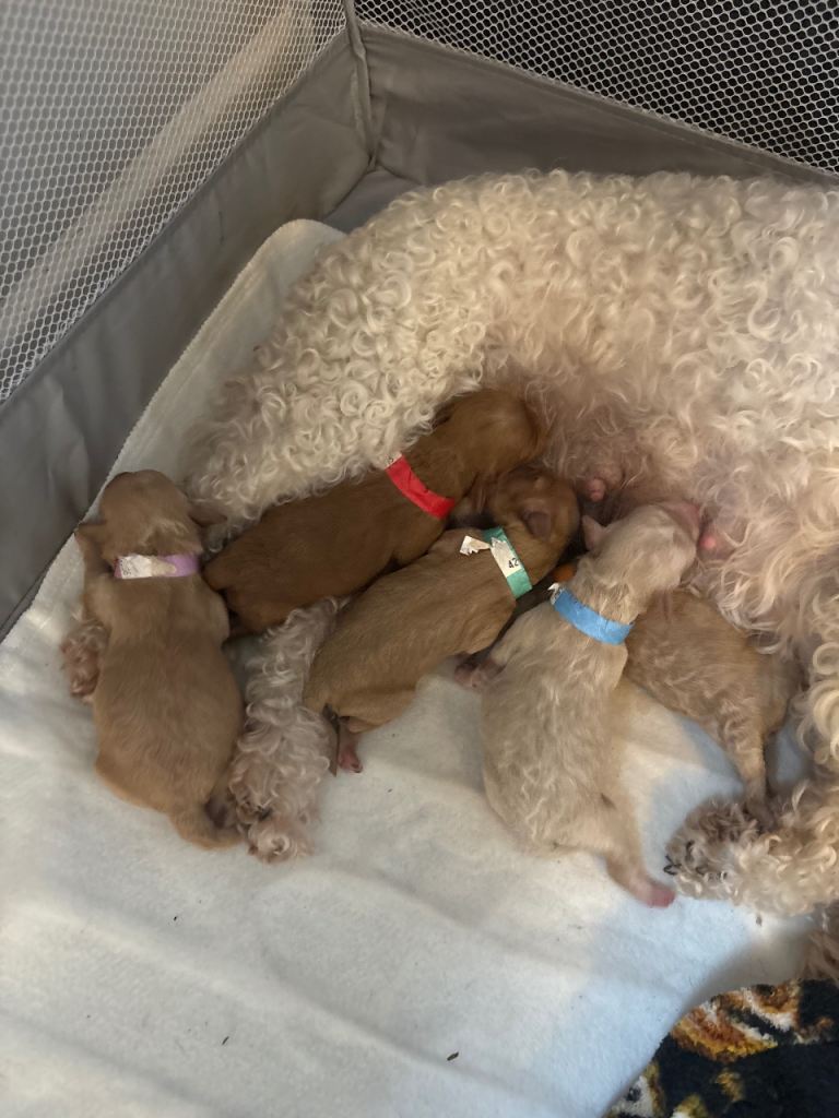 Hello my beautiful white miniature cockerpoo had 5 little babies all with there own unique colours 3 girls 2 boys born on the 6th of December will be looking for there forever homes will all come chipped and first jab with a vet check ready to leave on the 24th January 2026 deposit of £200 with secure ur pup