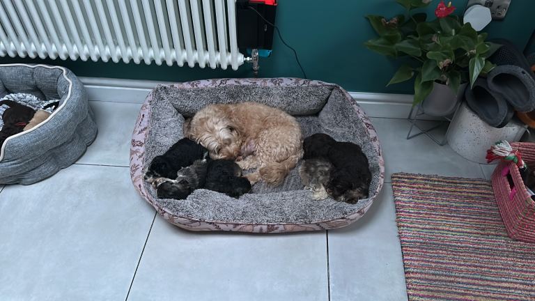 Betty our 3 year old cockerpoo has given birth to 10 stunning puppies, there are only 4 left now 3 girls and 1 boy , all the puppies are friendly and confident and have been integrated into our family the family