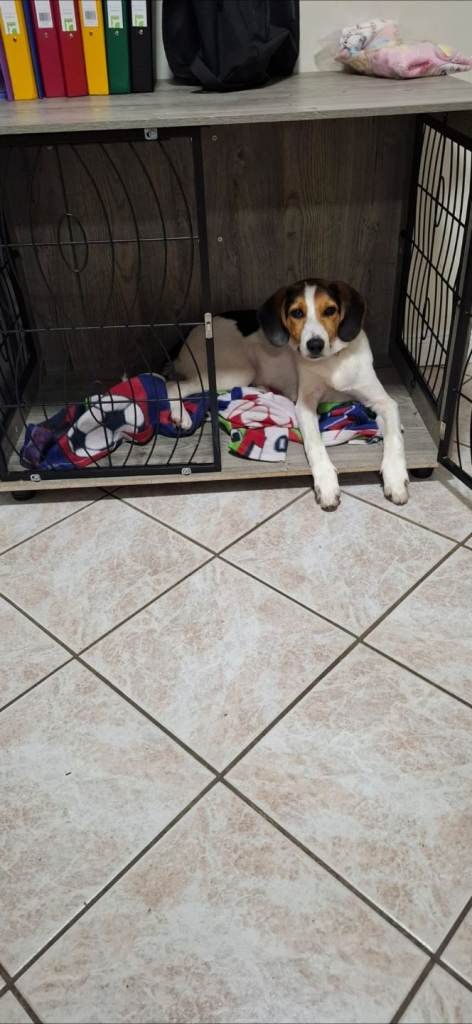 Male dog approx 10months, crate trained, good with children.