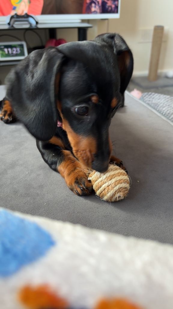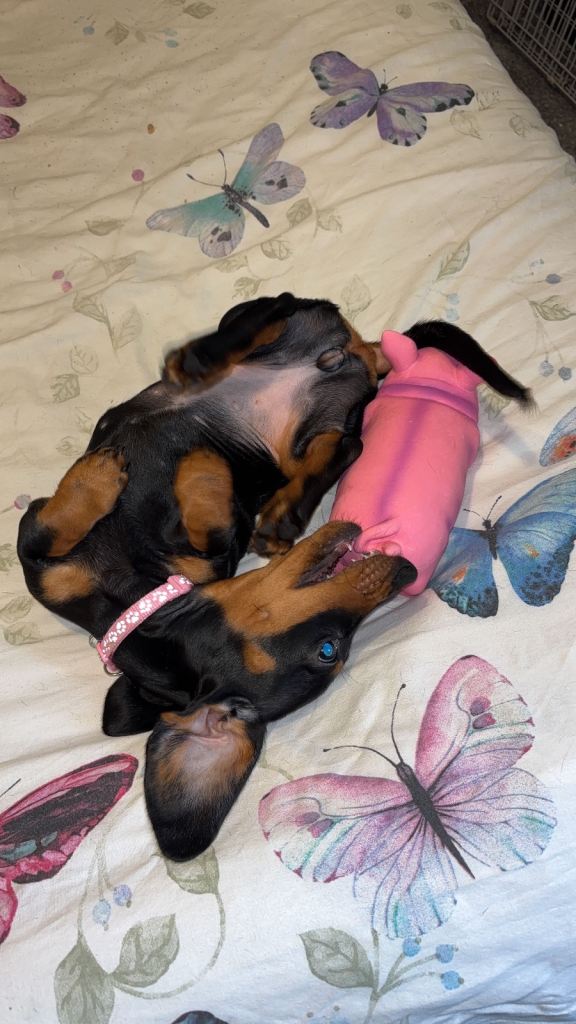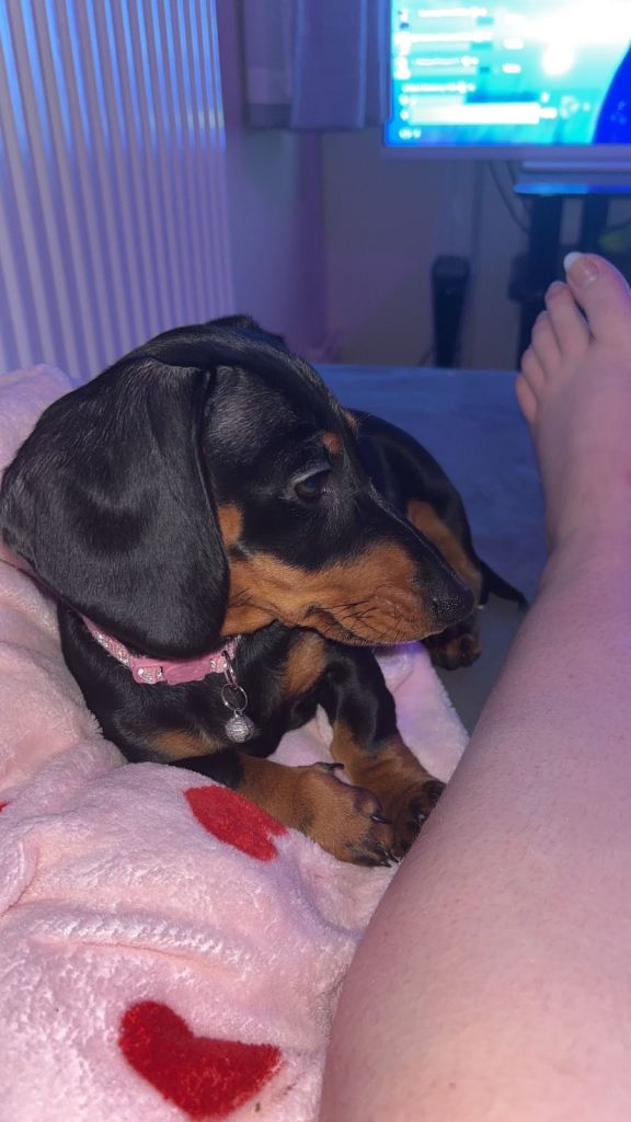 Brought however my cat doesn’t like her at all and is getting very scared of her and fighting for my attention and I do love them both but this dog is such a needy dog I can’t give them equal attention or do anything without this dog following me or the cat fighting with her. Born 7th December 2025. I also am getting very stressed out trying to cater to them both. U have to go online to change the microchip information. She just needs one more vaccination.