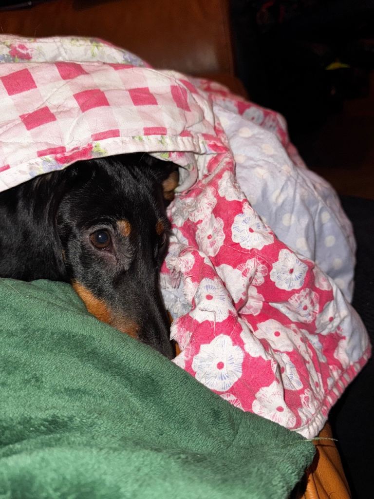 She loves snuggles under blankets - inside your house coat or anywhere her little bum fits!