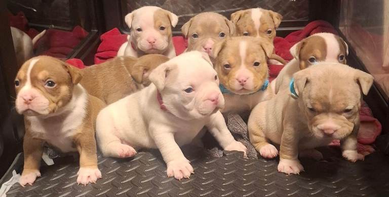 The puppies are raised in a family environment, accustomed to people and other animals.