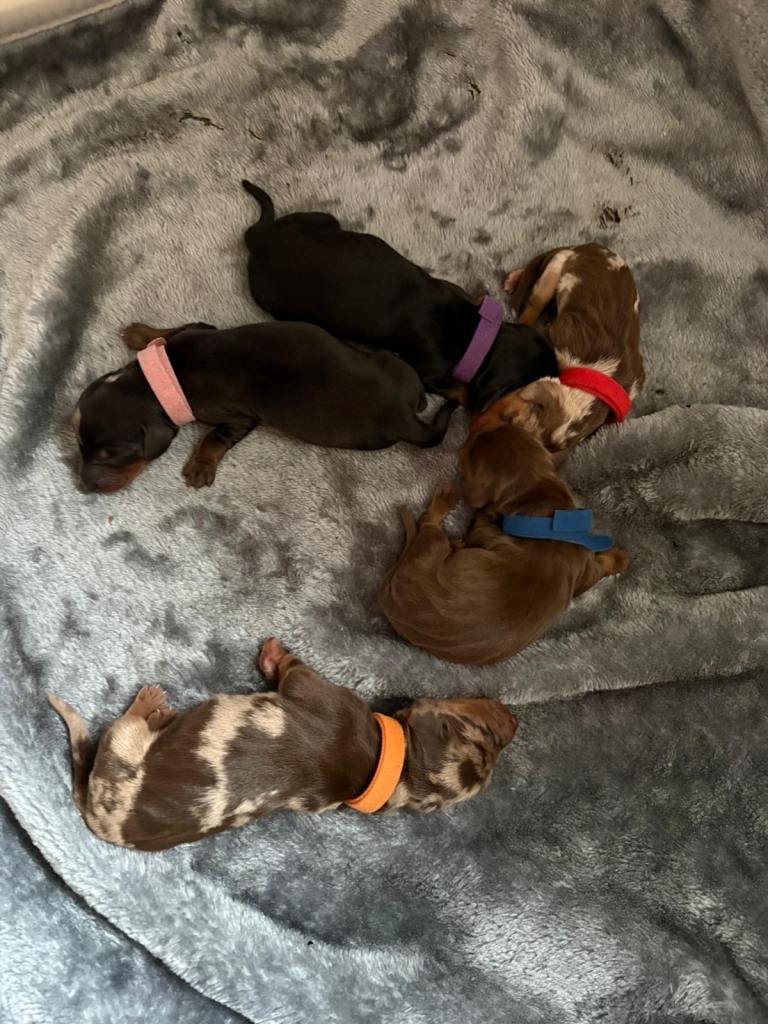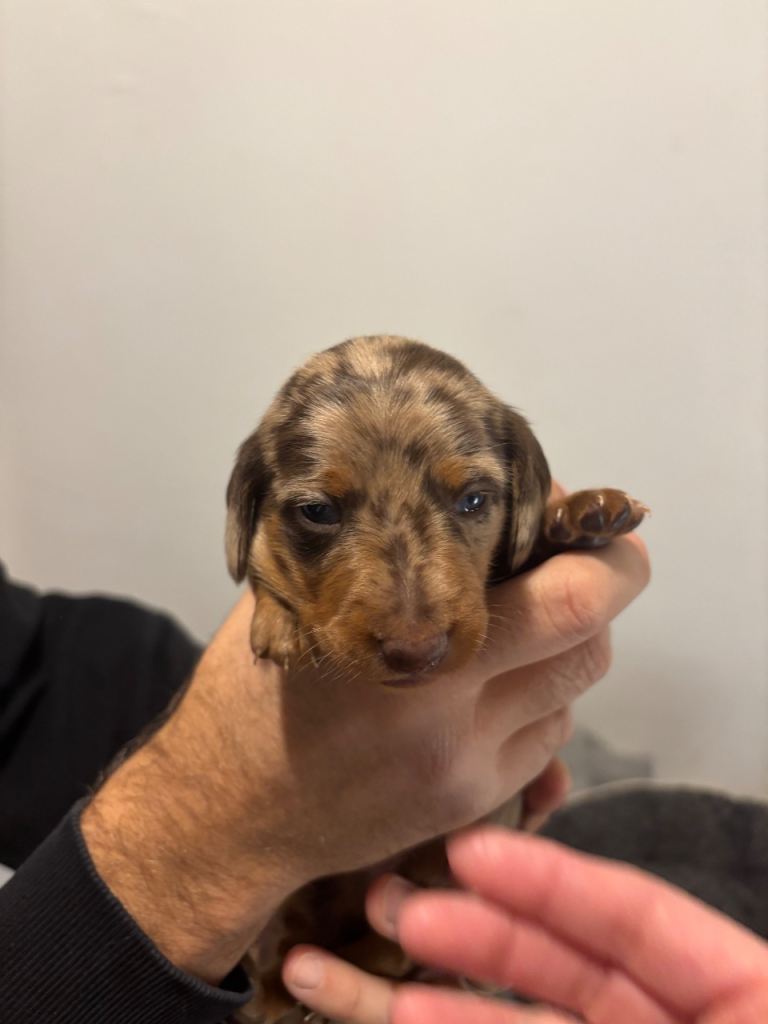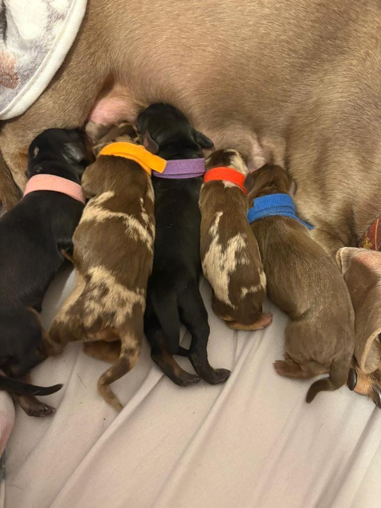 We have 3 of 5 puppies left 1 brown and tan male 1 female Black and Tan with little silver patches on her face. 1 other female dapple tan and lilac. Mum and dad can be seen as they are loving family pets. Mum is a lilac Isabelle and dad is a tri- merle with beautiful blue eyes. Ready January 21st