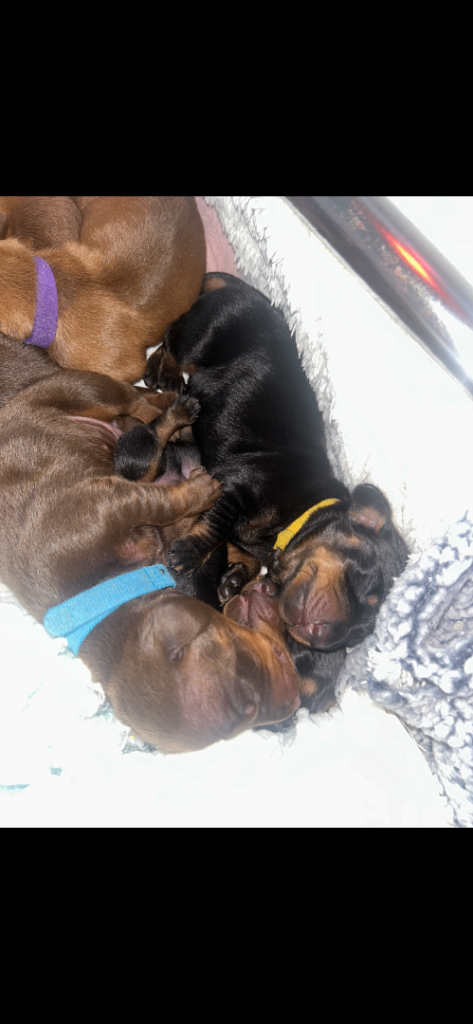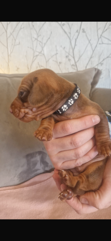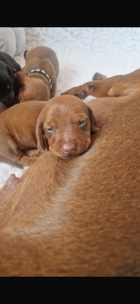 Beautiful dachshund puppies for sale. Litter of 8. All puppies have great temperament and very well socialised and raised in family home with our 2 kids. Both parents can be seen at request as they are our family pets. All puppies will be health checked by vet, vaccinated and microchipped aswell as deflead and wormed when ready to leave .