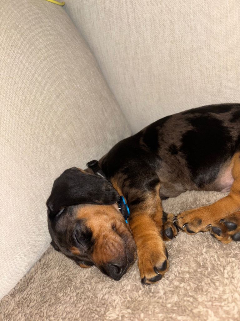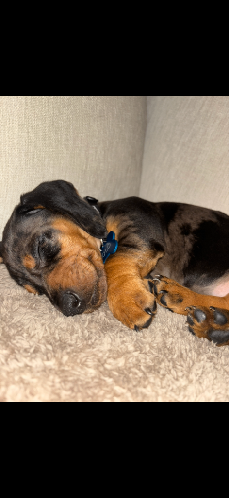 I have a male dachshund puppy for sale he is very playful and great around kids. He is 14 weeks old up to date with vaccinations wormed and flea treatment done. Re homing due to personal circumstances changing. We would like him to go to a suitable home where he will be well looked after message me for details