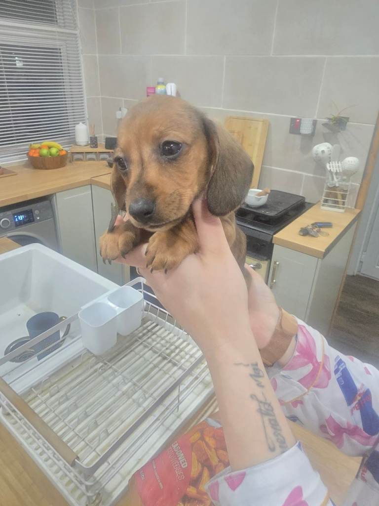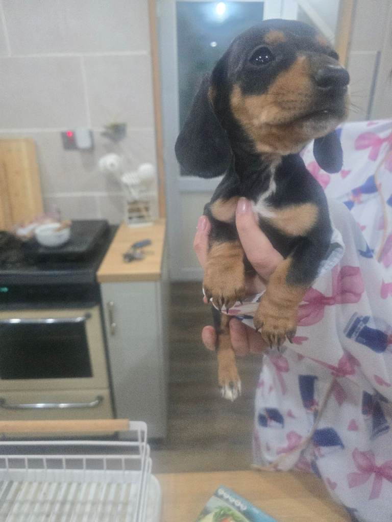 4 dachsund puppies looking for there forever homes, 3 male and 1 female available. Both mother and father are family pets and can also be seen, all puppies are playful and very friendly often being held and playing with my youngest daughter, all 4 are feeding perfectly away from mother, Mother is a red dapple Father is pie bald 1 x boy red dapple 1 x girl red 2 x boys black and tan Any further details needed please message me, thank