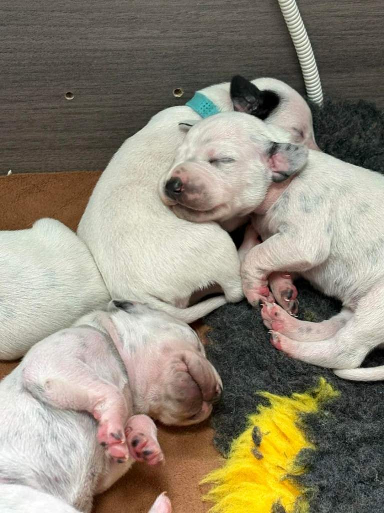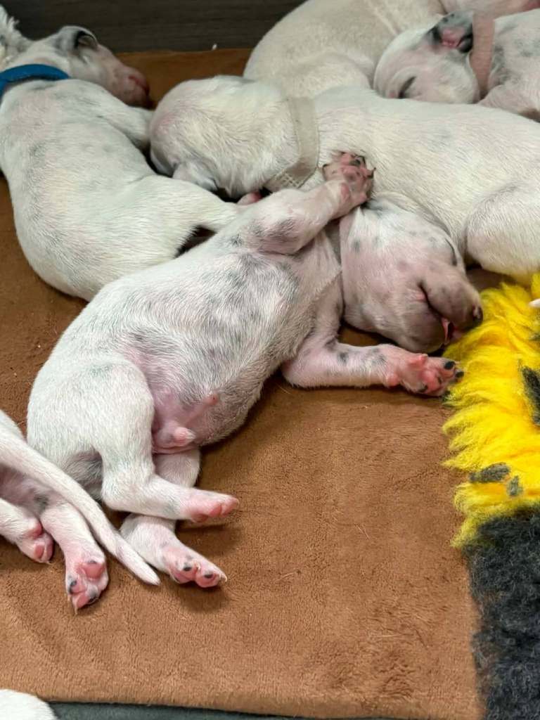 Not KC registered due to being blocked by maternal grandparents however Daisy is pure bred, slender black spotted Dalmation with lovely markings. She is an elegant and loving dog with an amazing temperament. We are a busy home with lots of noise which the puppies will be surrounded by.
