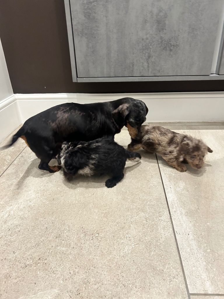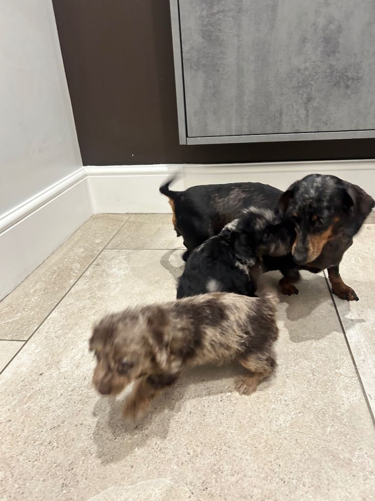 One little boy left - blue Merle. Mummy is dachshund and dad is toy poodle. Happy, healthy puppy. Up to date with worming ect and ready to go now. Mother will be seen.