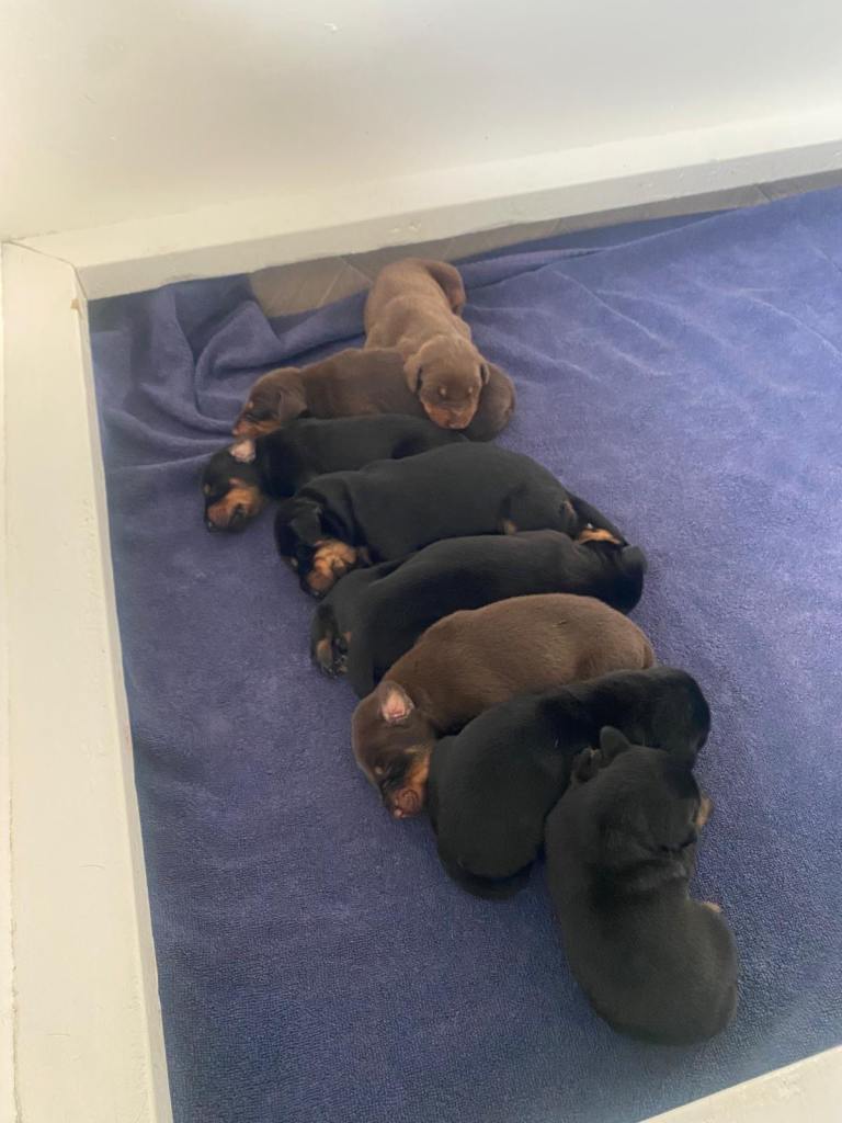 My beautiful girl has gave birth to 9 healthy puppies. Girls and boys are available mixed black and tan and brown and tan.