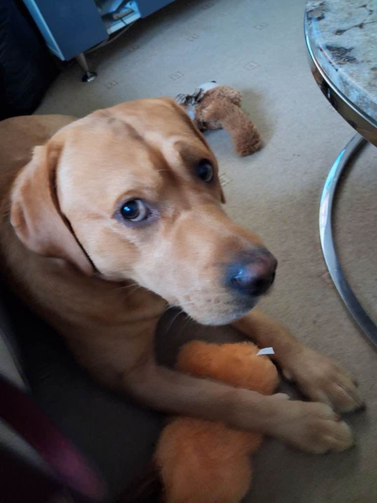 Red fox labrador male he will be three in July. Very well behaved dog likes playing and lots of walks