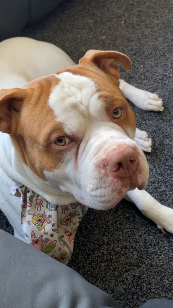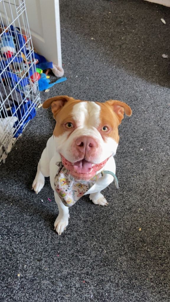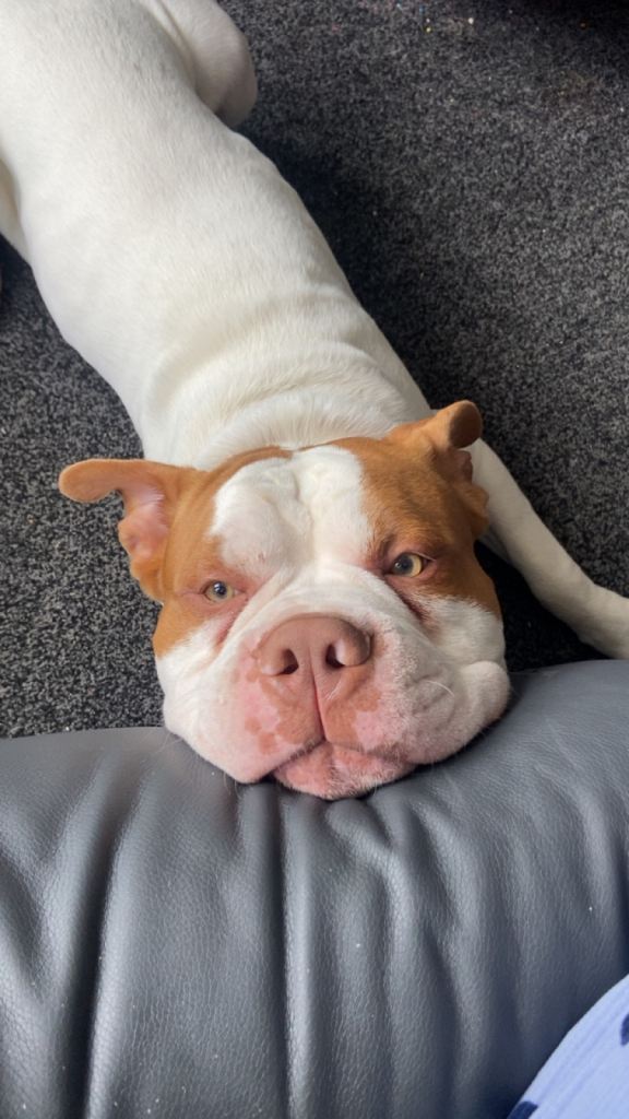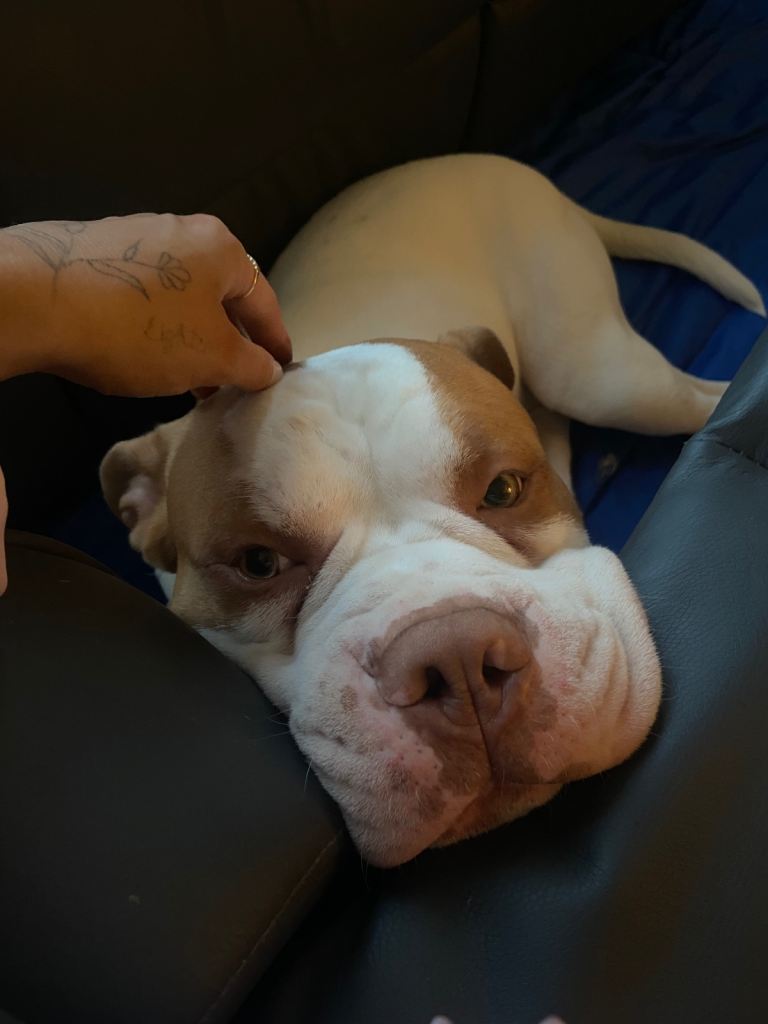 Heart broken to post this , buddy is a very hyperactive dog and loves to chew unfortunately I don’t have the time to walk him and I have two kids and he constantly chews their toys , I’m hoping he can go to a loving home with no kids or older kids that has plenty of time to take him walks and stuff