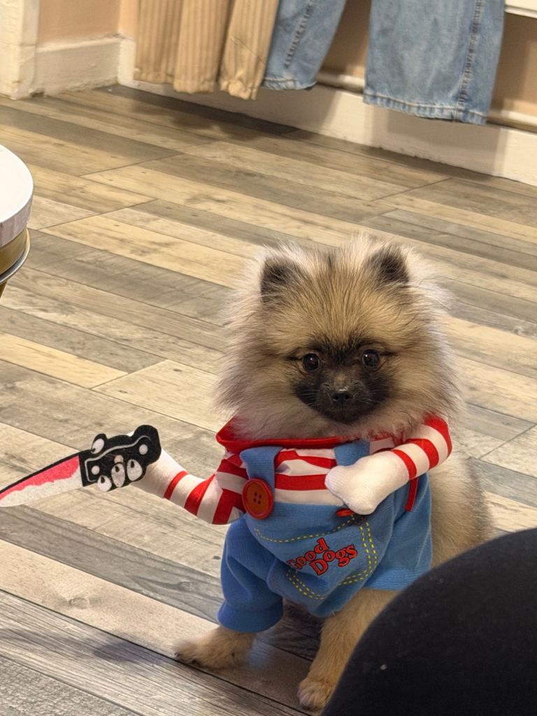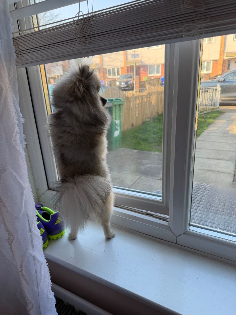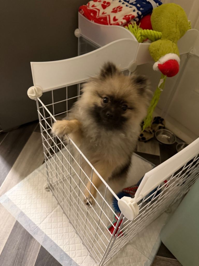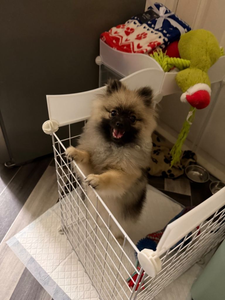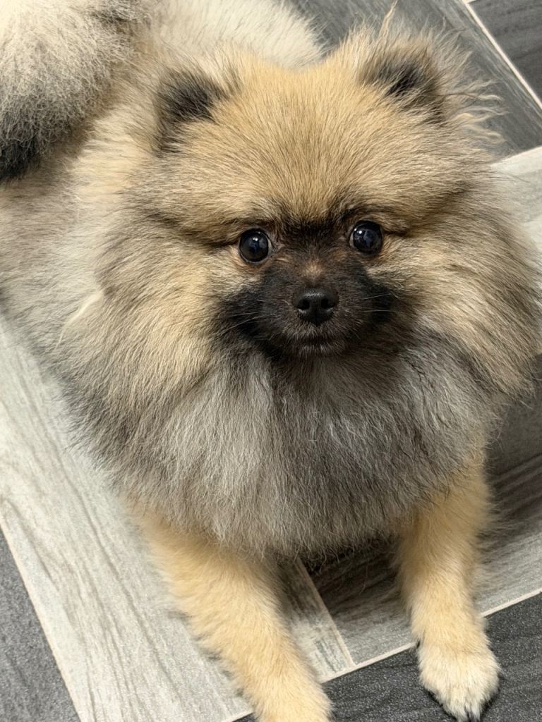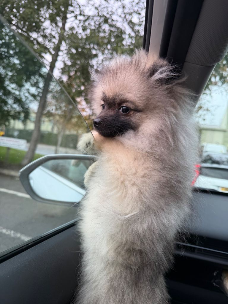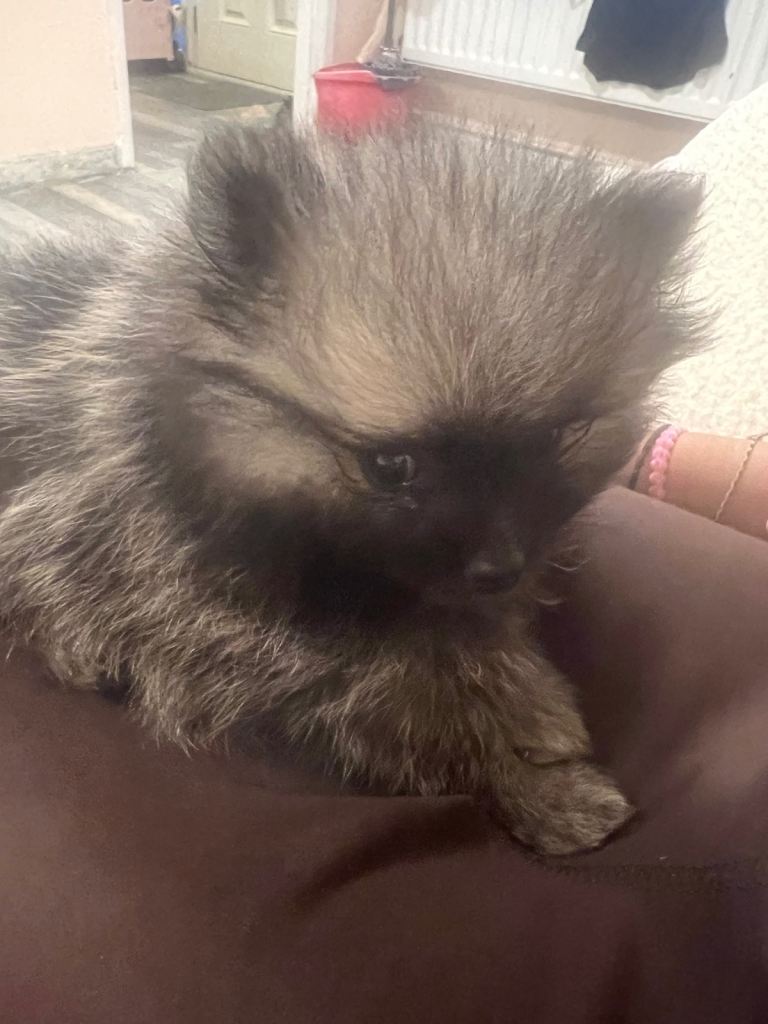 I am selling a mini pomerian dog. He is 10 months old, very friendly, and loves children. He is well-behaved and calm. I am looking for a good, caring family for him.