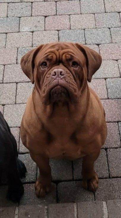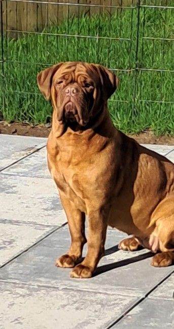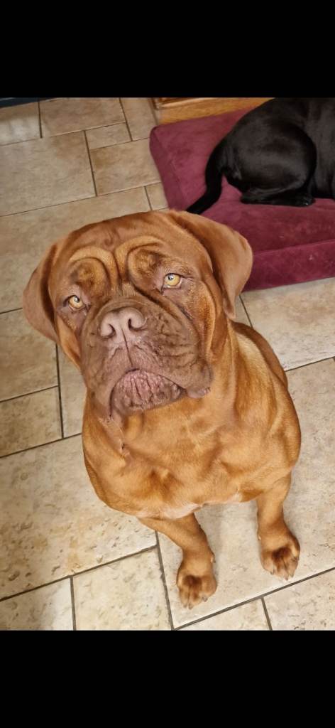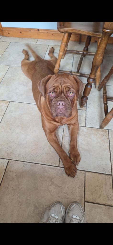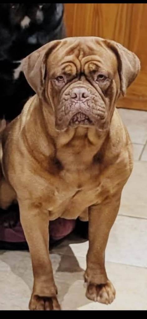 Dogue de bordeaux bitch not neutered and ready to go. Five star home wanted for a great dog. Raised around other dogs and older children. Not great with smaller animals like cats etc