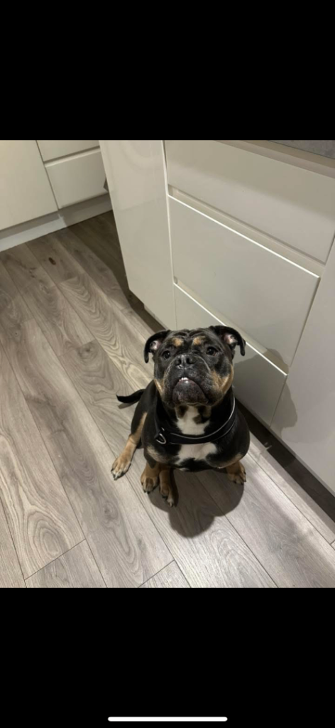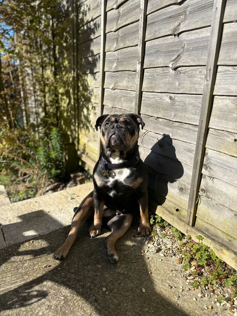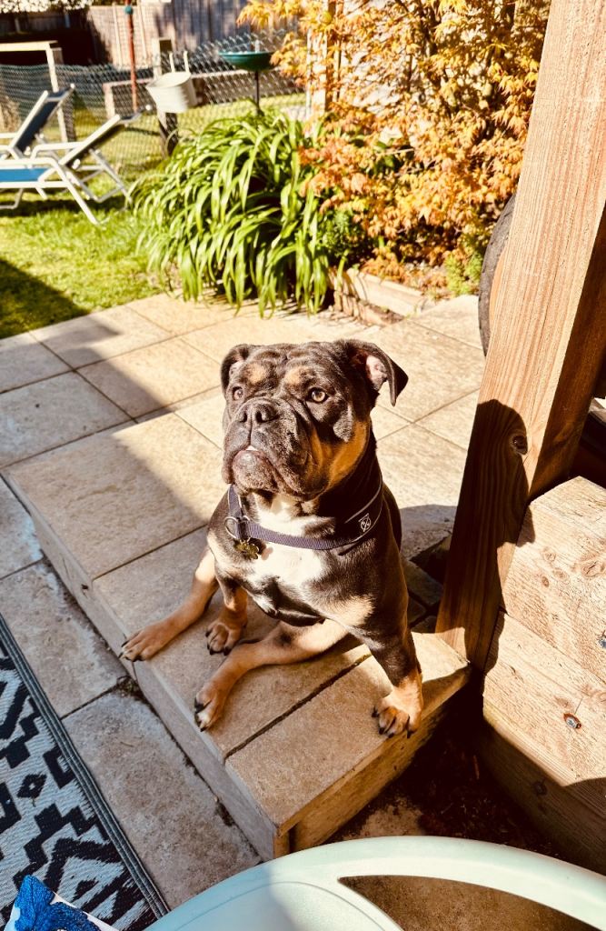 Dolly is a truly stunning, female, rare blue tri-colour Olde English Bulldog with the most beautiful colouring and a presence that really turns heads. More importantly, she’s an incredibly loving girl who makes the most wonderful family companion who just loves cuddles.