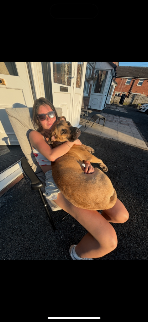 Unfortunately i am having to rehome dotty due to personal reasons and no fault of her own,, im 5 months pregnant and has just become to much for me as im not getting the time or energry to walk her or get her out n about she is good with children but i recommend 7+. She is good with others dogs and could live with one as we have lived with other dogs before however she needs to be fed seperate as she is food aggressive toward other dogs with bowls of food or bones. She is abit weary of men, due to past problems witch i will to u about privatley, however she will come around after meeting u properly. She is such a loving dog, and just wants to be loved and have time put into her.