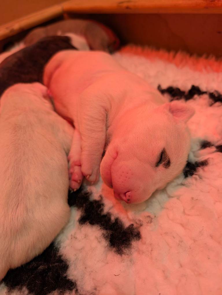 Mum is white with ear markings and is the biggest softie with an excellent pedigree
