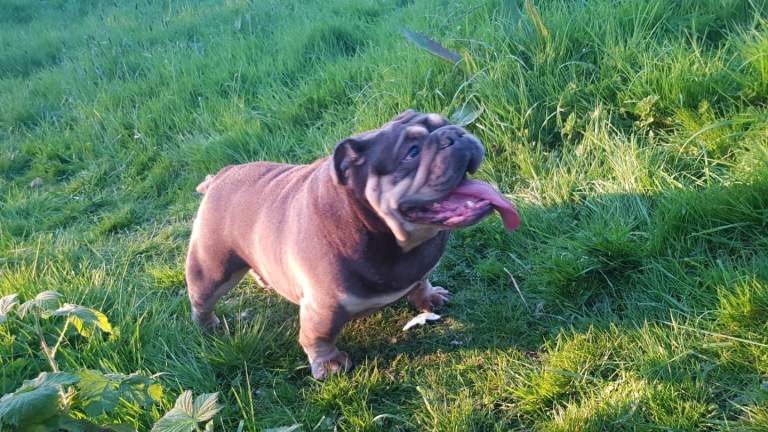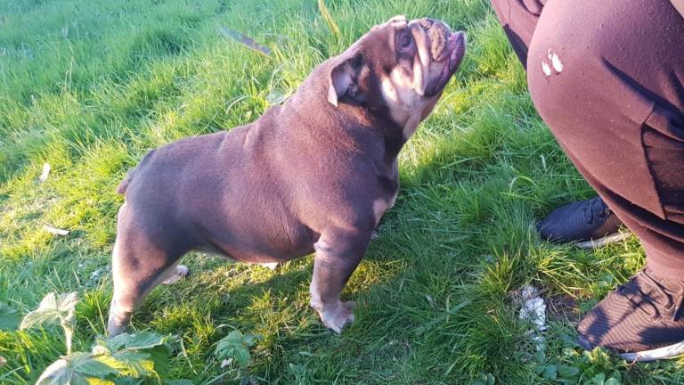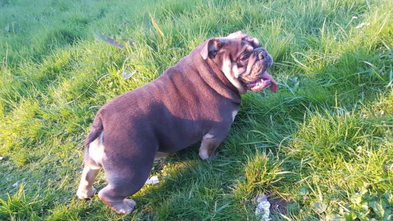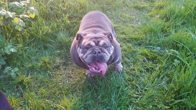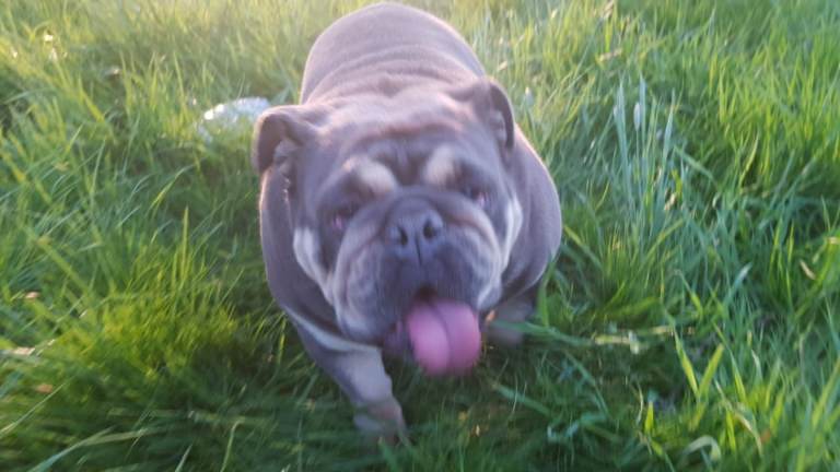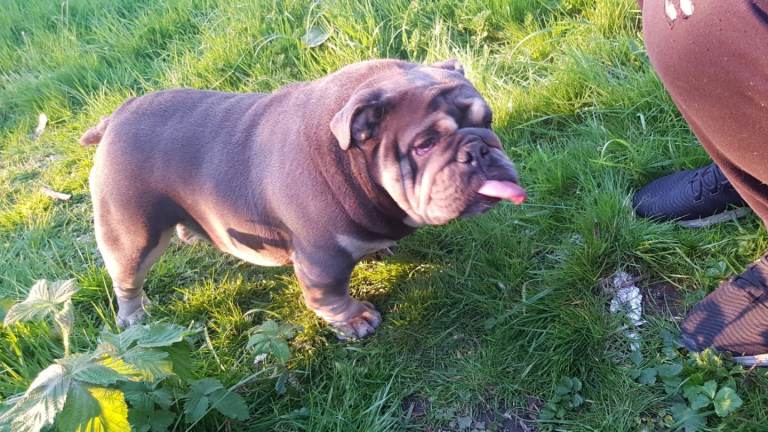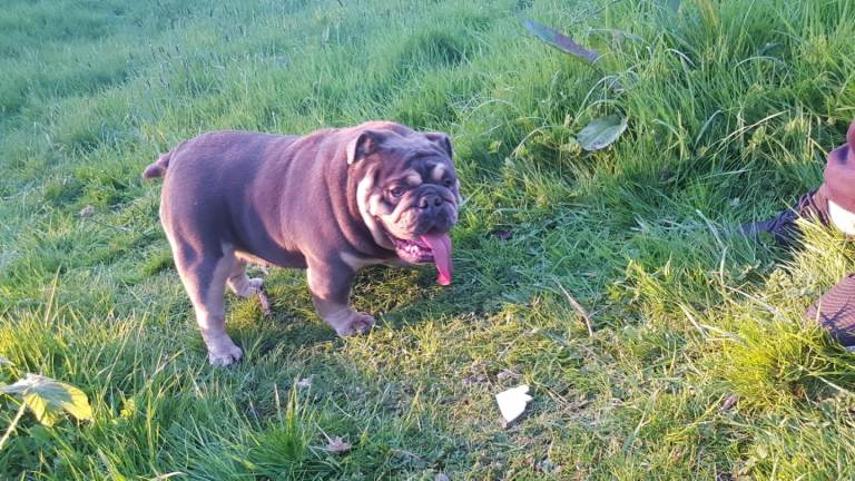 Hi i have my English bulldog female for sale she is good quality female lilac tri colour 2 years old very friendly good with kids other dogs house trained anymore info please contact me